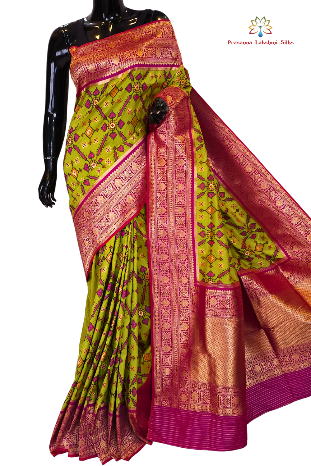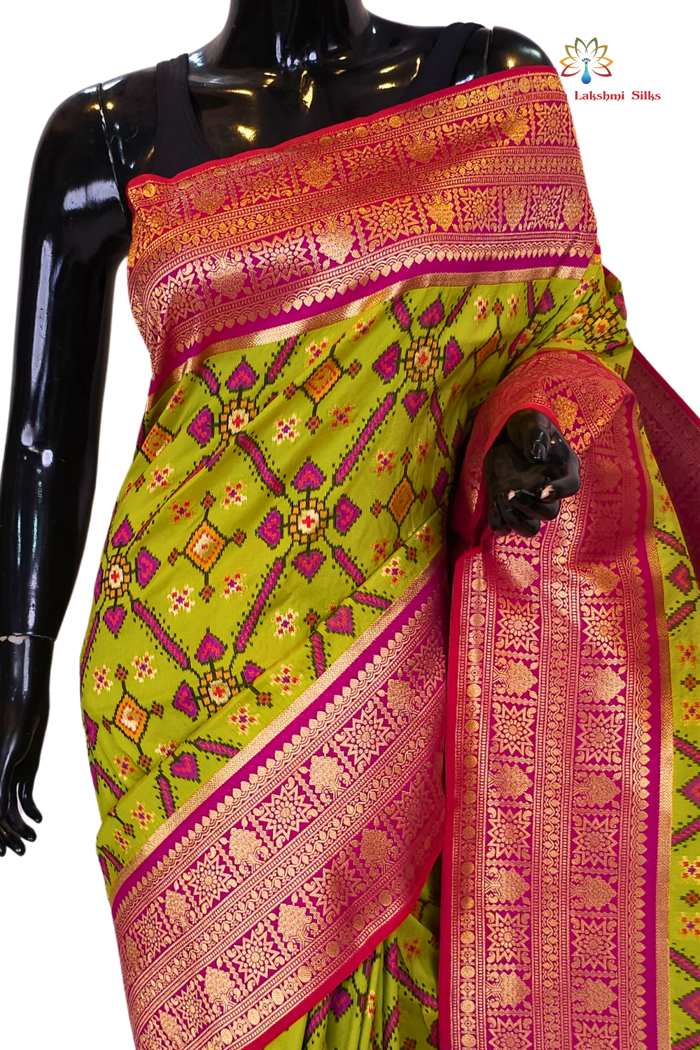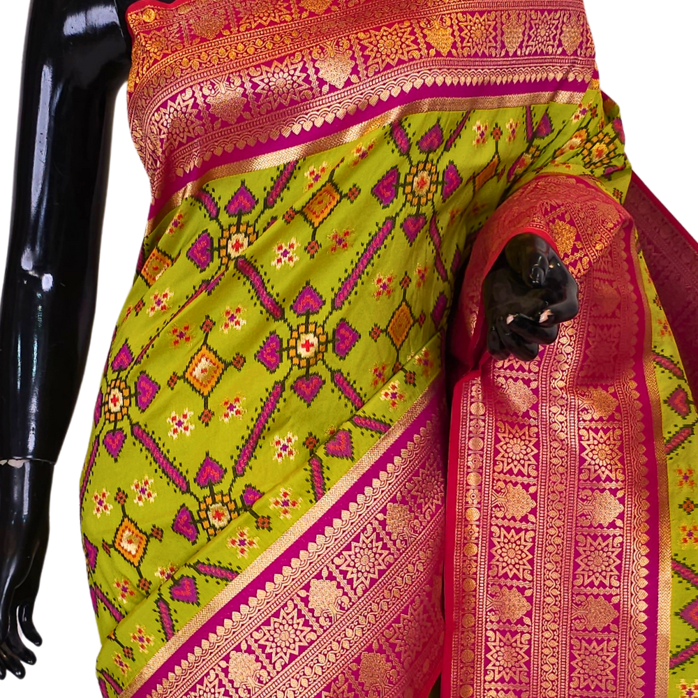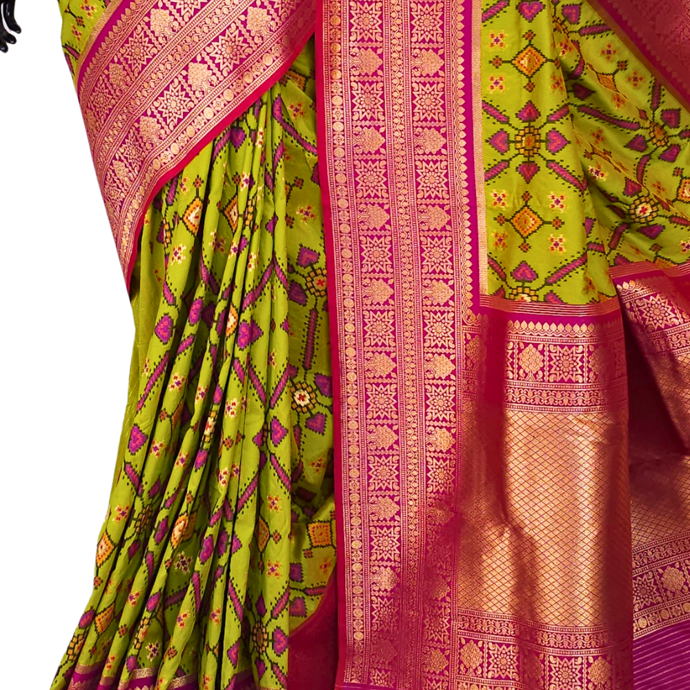 Elevate your style with our Semi Banarasi Saree,allover patola weaving with Kanchi borders and Rich pallu paired with contrast blouse.....