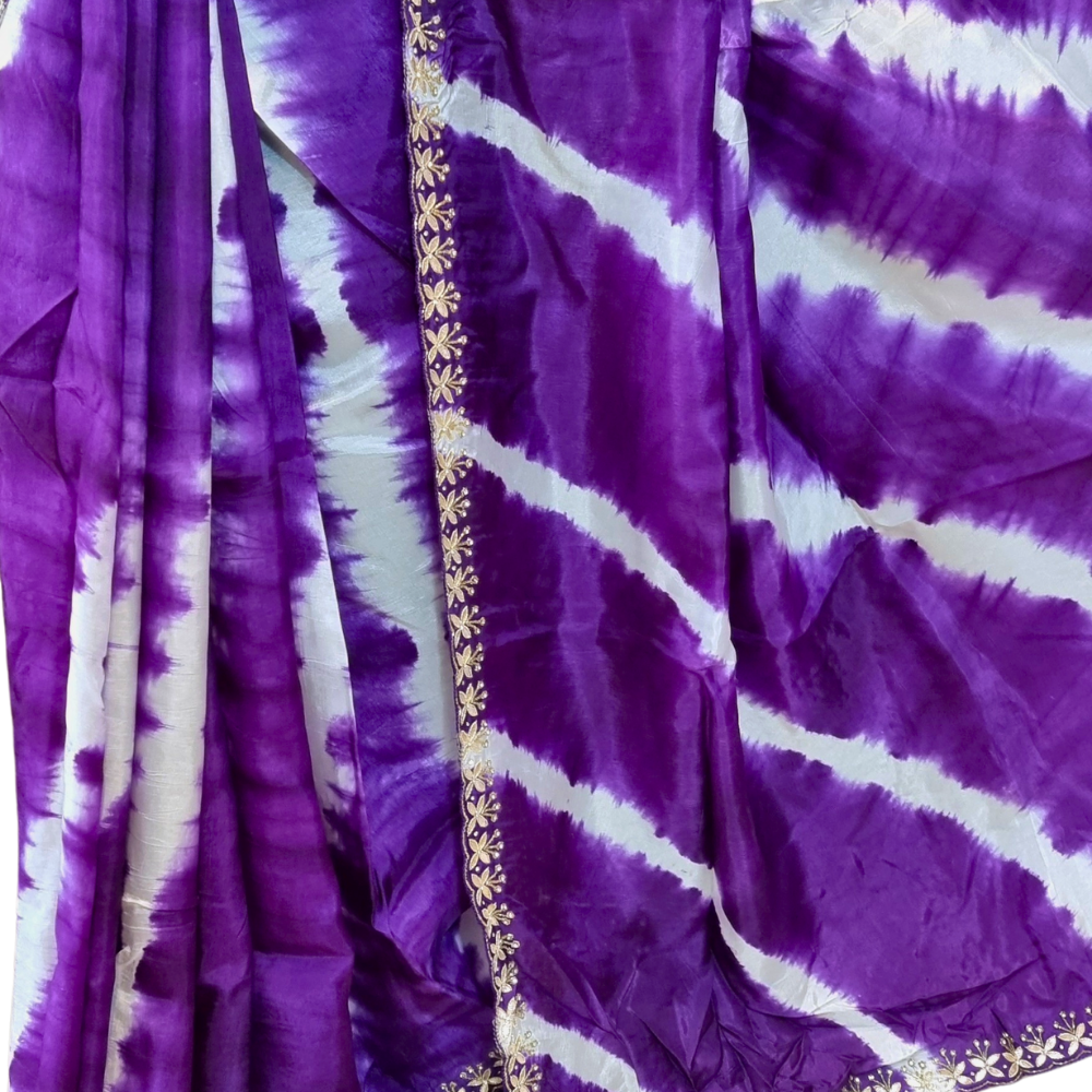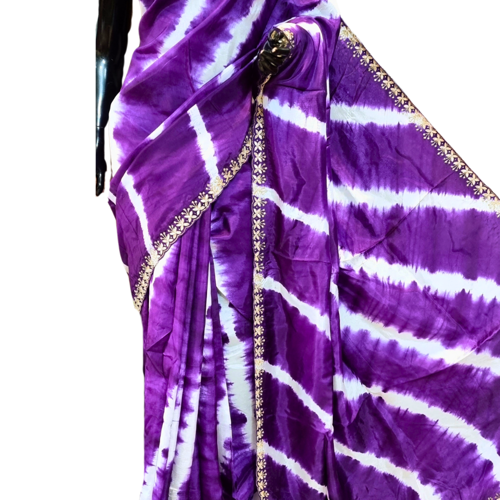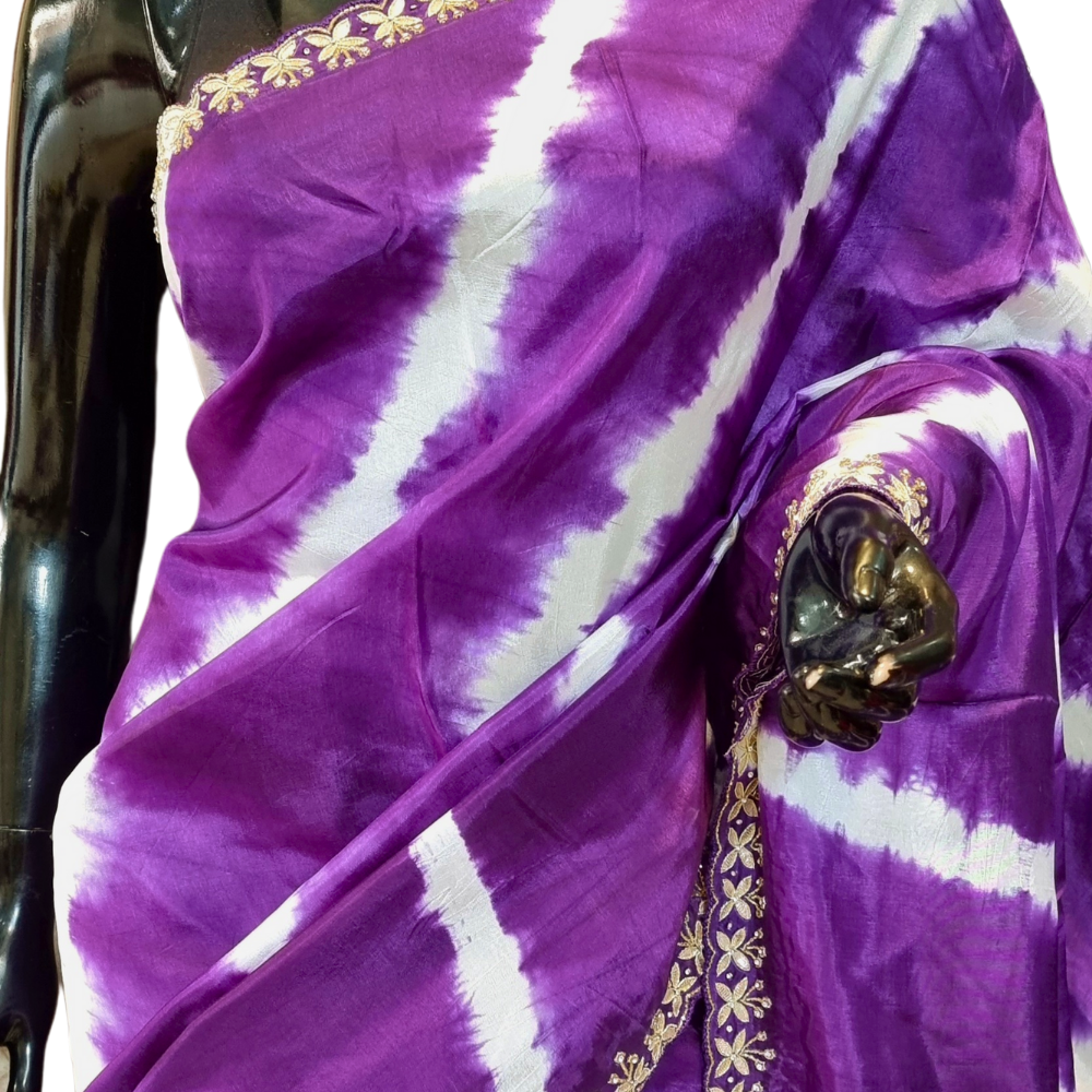 Experience the beauty of intricate craftsmanship with our stunning Designer Crepe Silk Saree, allover lehariya pattern with elegant beads cutwork borders and pallu paired with Contrast Readymade Blouse.....