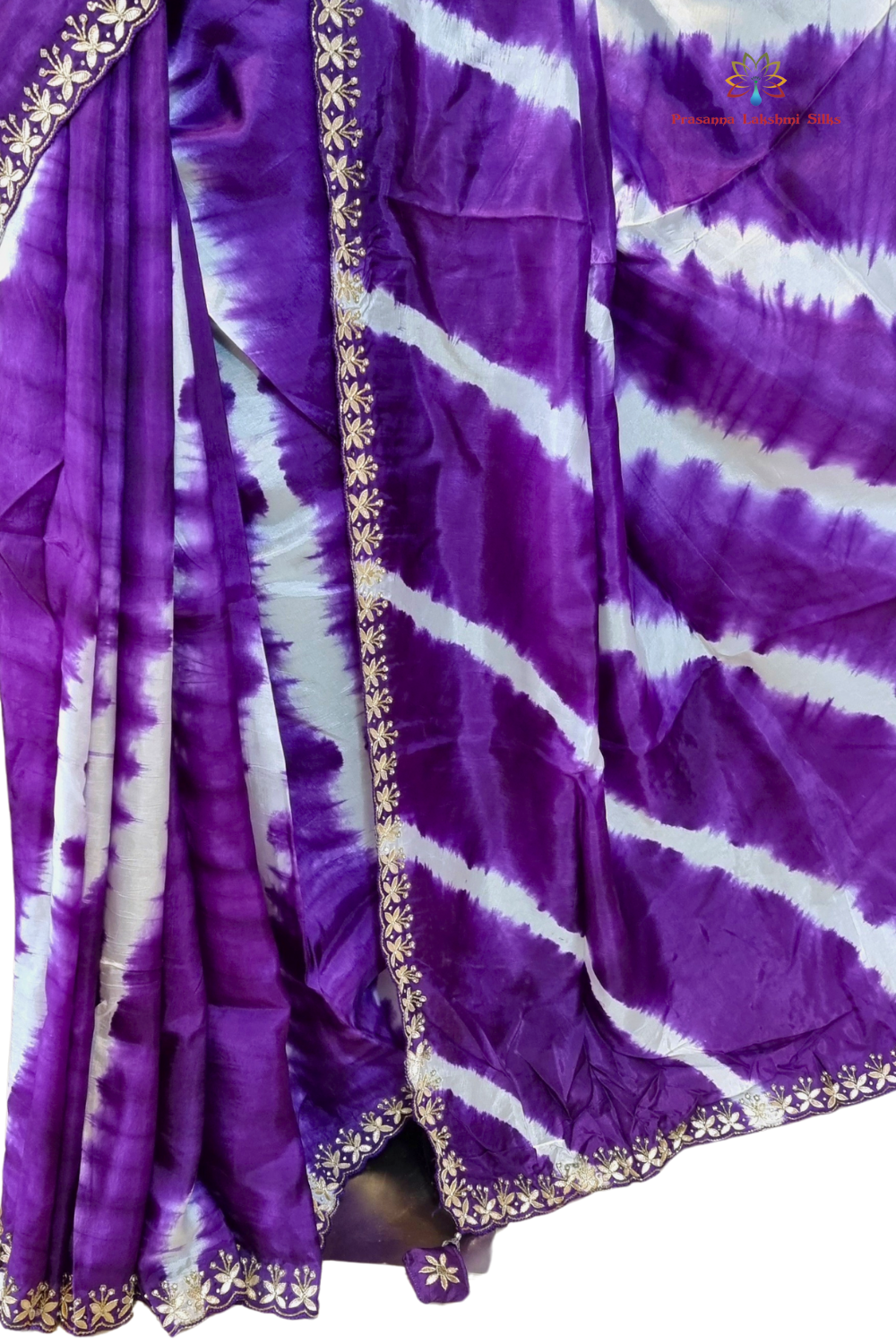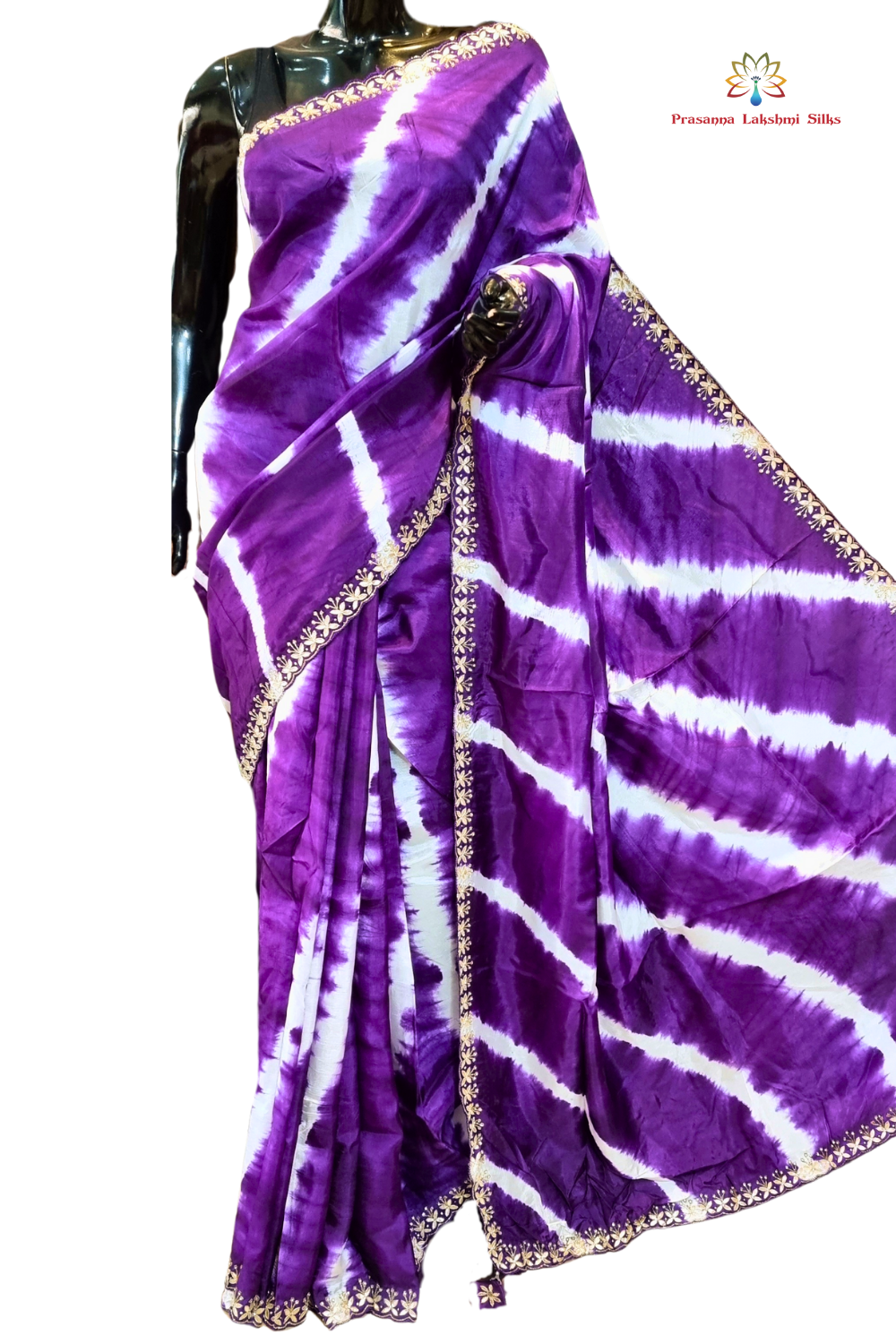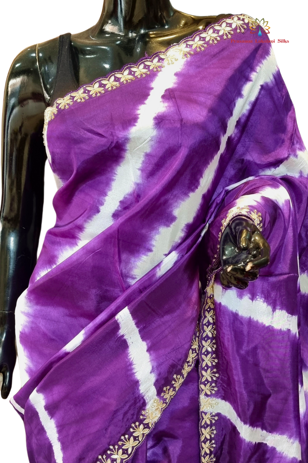 Experience the beauty of intricate craftsmanship with our stunning Designer Crepe Silk Saree, allover lehariya pattern with elegant beads cutwork borders and pallu paired with Contrast Readymade Blouse.....