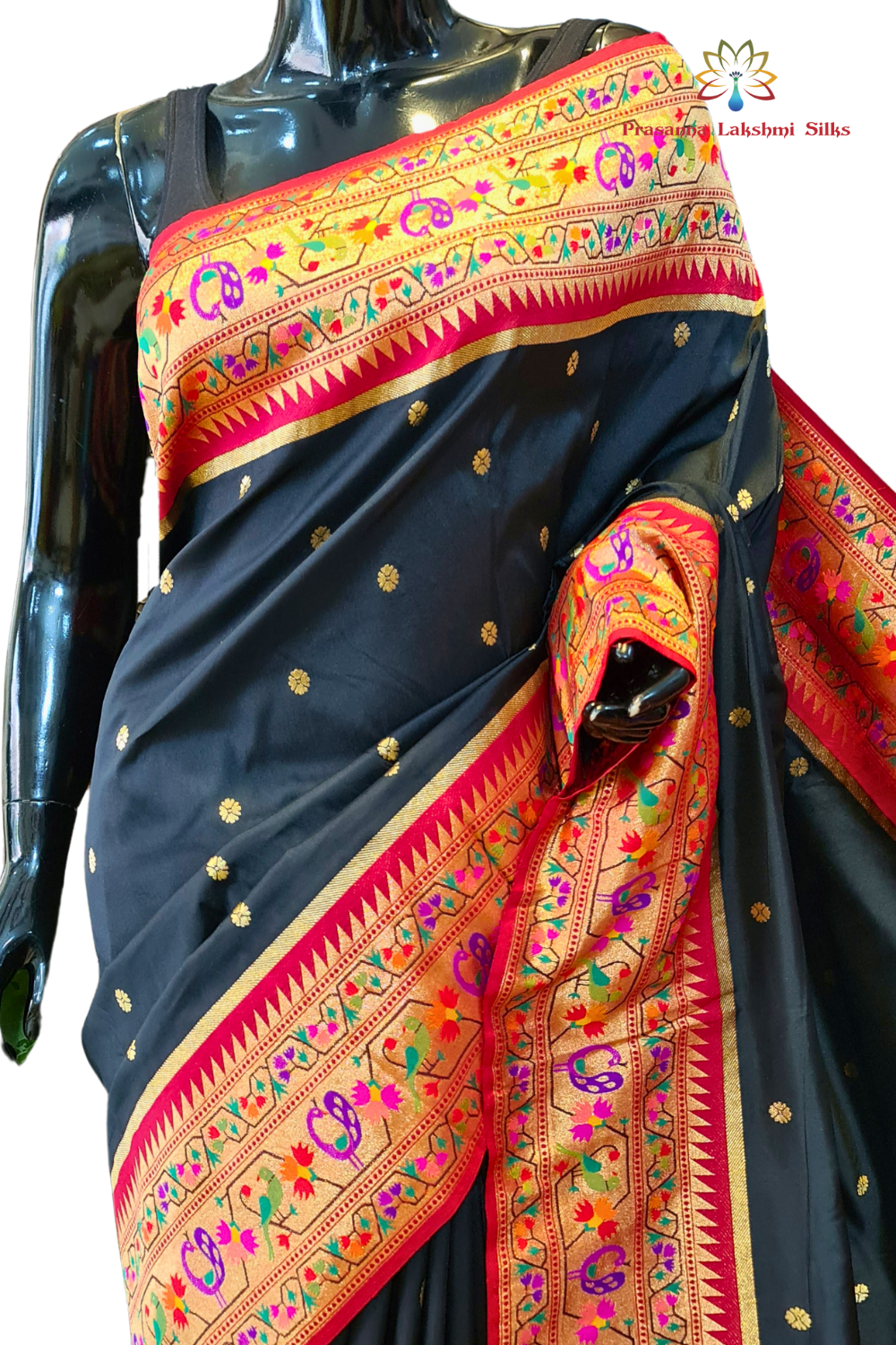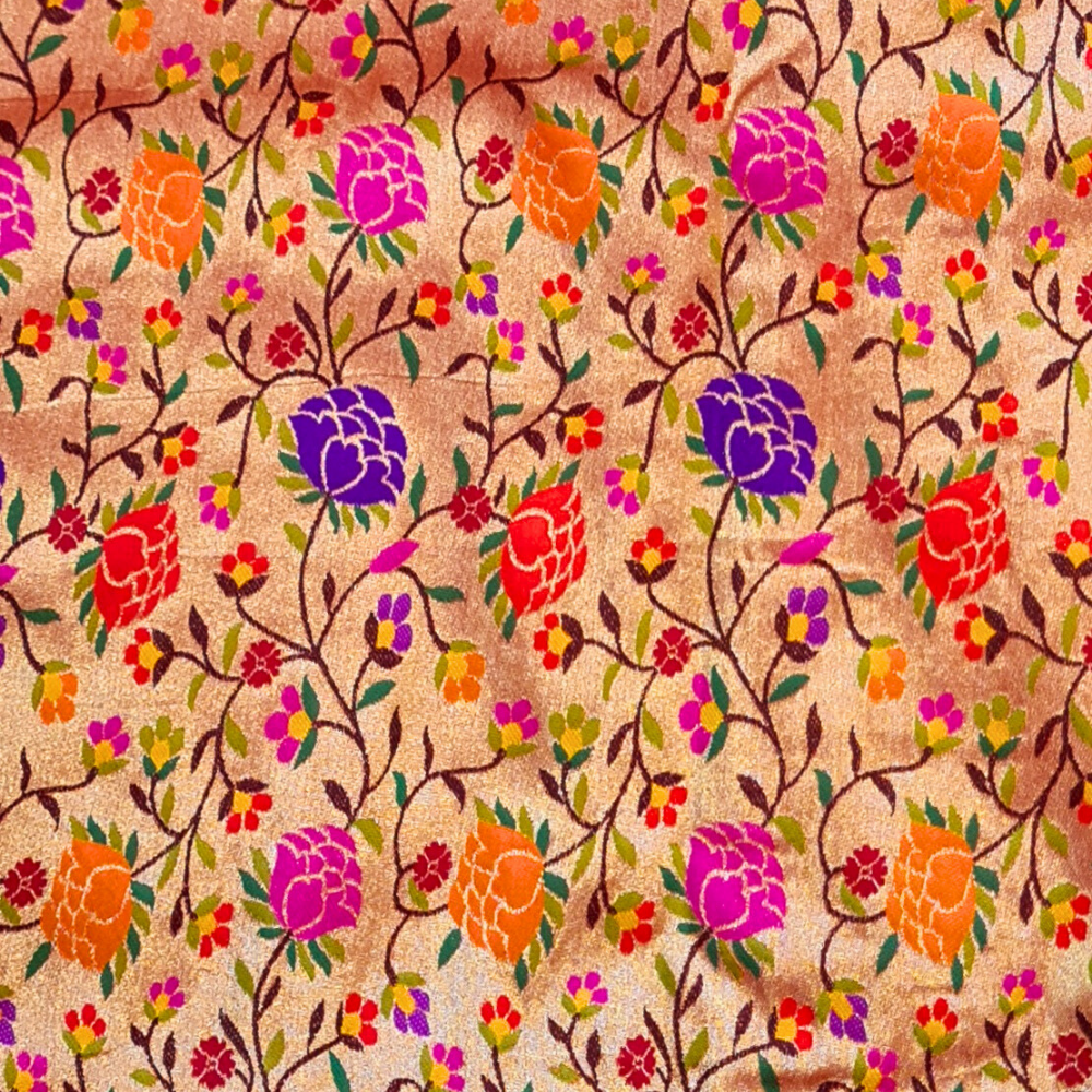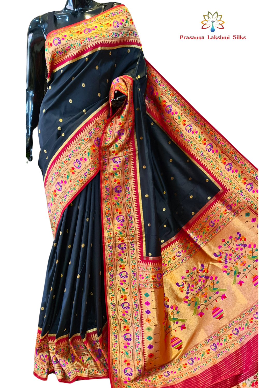 Elevate your style with our stunning Semi Banarasi Saree,allover zari woven motifs beautifully crafted tisue paithani borders with rich zari paithani pallu paired with paithani blouse.....