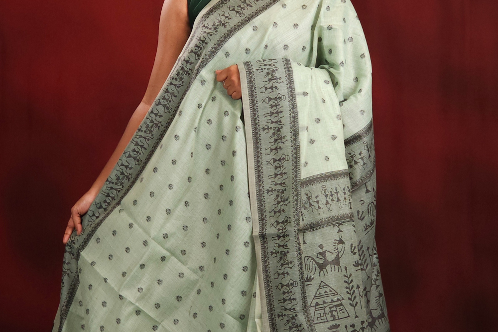 Pastel Mint Blue Chanderi Silk Cotton Saree