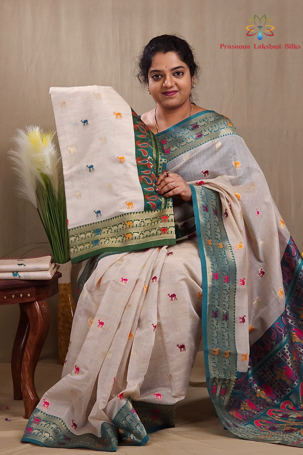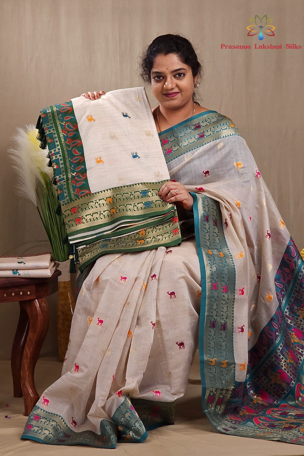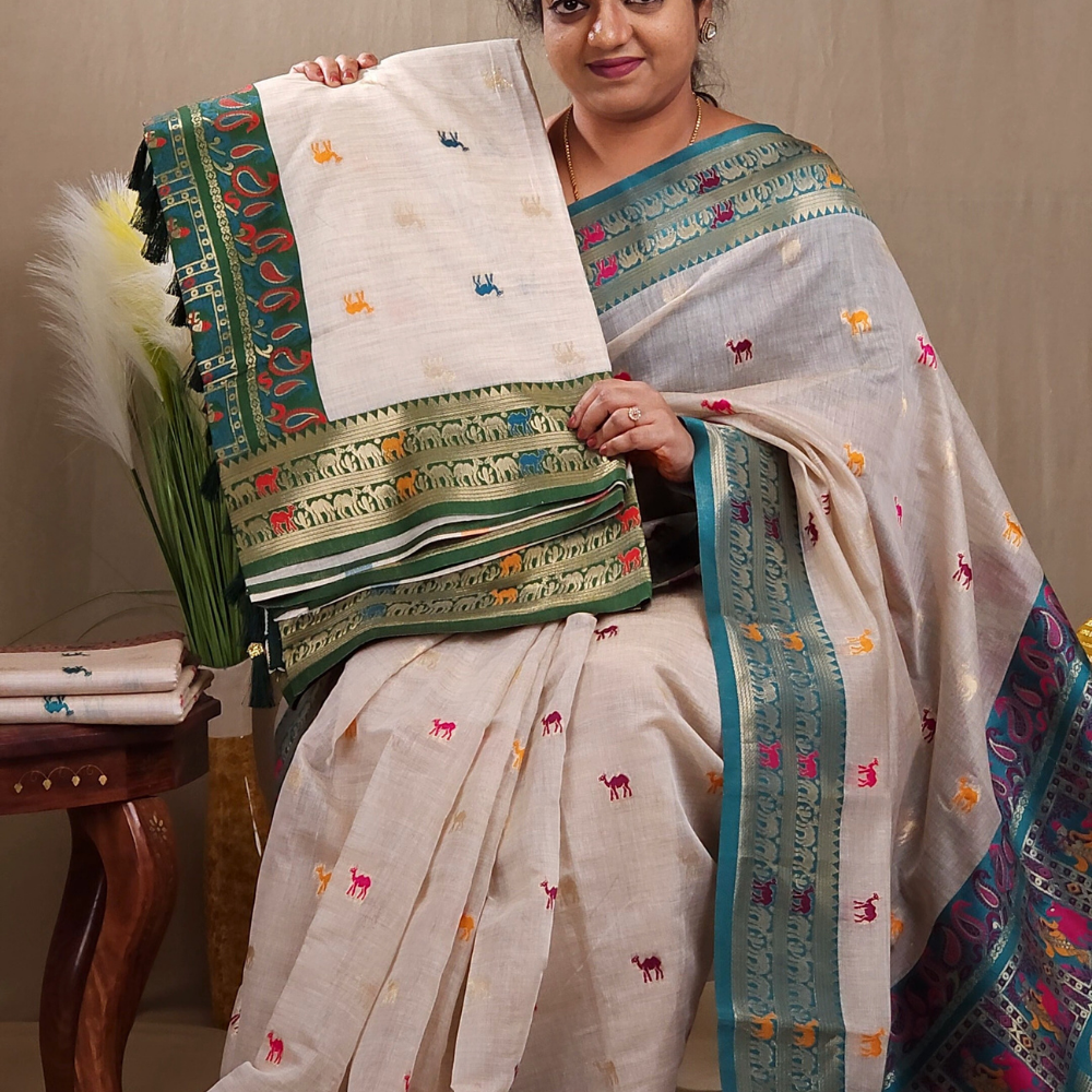 Chanderi silk cotton sarees all over camel thread woven motifs with contrast zari borders, rich brocade pallu and running blouse