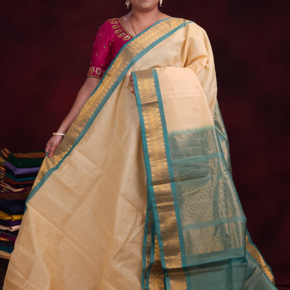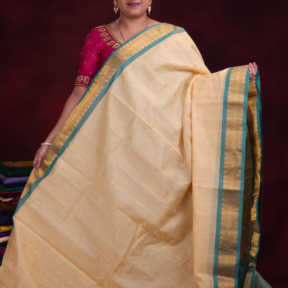 Elevate your style with our stunning Gadwal Silk Cotton Saree, featuring Intricate zari woven motifs with zari woven self borders luxurious brocade pallu paired with blouse ...