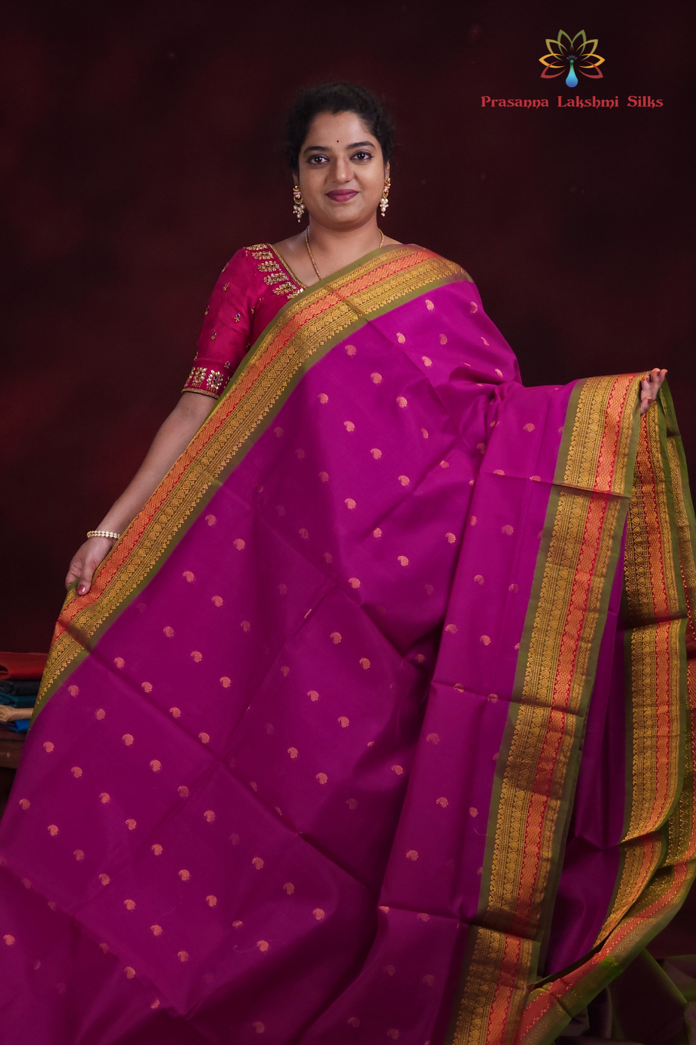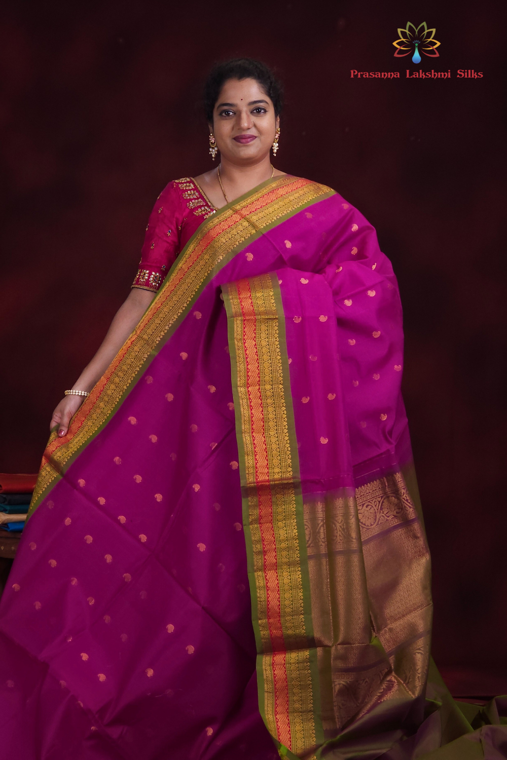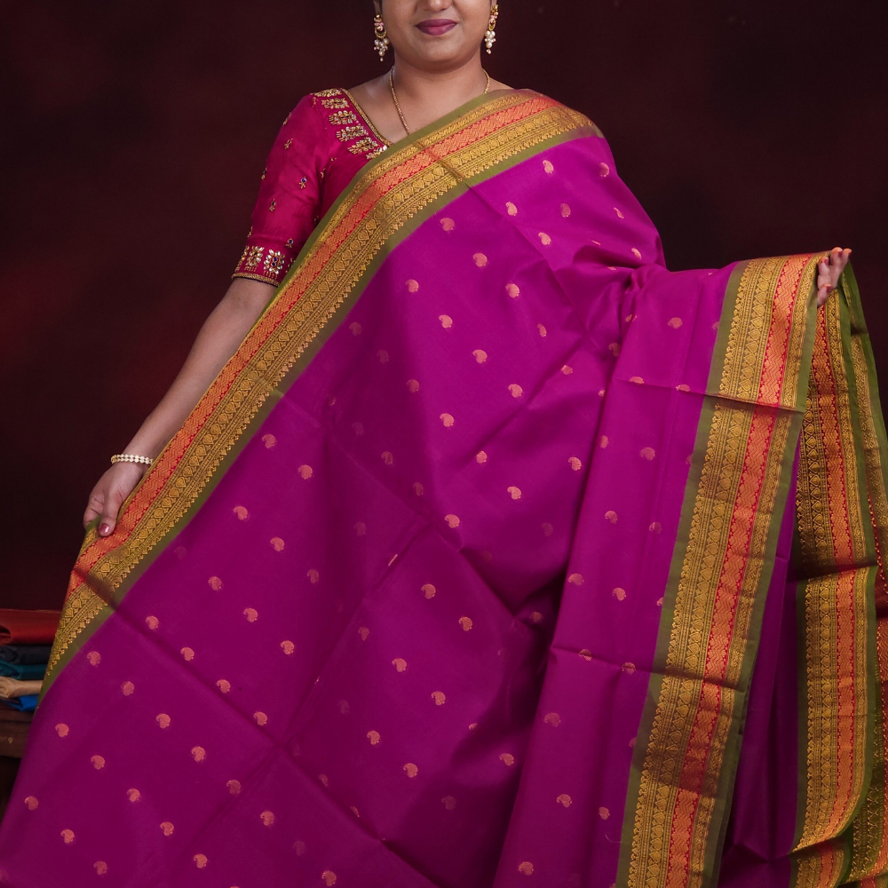 Deep Majenta and Olive Green Gadwal Silk Cotton Saree
