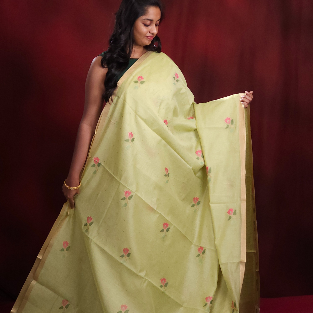 Light Pista Green Chanderi Silk Cotton Saree
