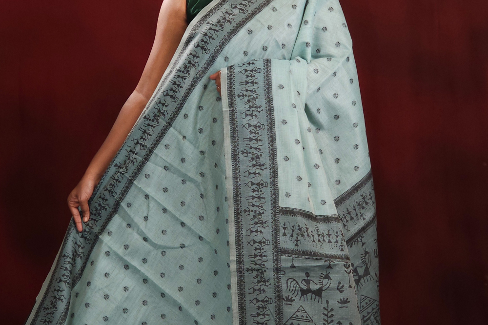 Pastel Mint Blue Chanderi Silk Cotton Saree