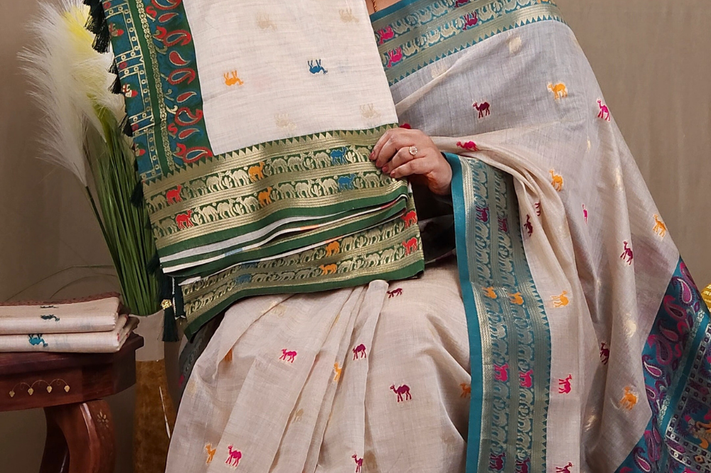 Experience the timeless beauty of 100% Pure Silk Handloom Gadwal Sarees, crafted by skilled artisans and certified by Silk Mark for purity. These sarees feature intricate handwoven zari patterns, rich textures, and a lightweight feel that makes them ideal for weddings, festive occasions, and cultural celebrations.