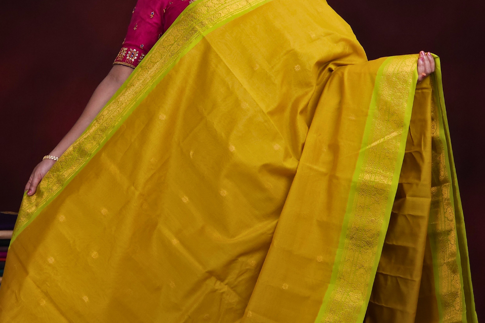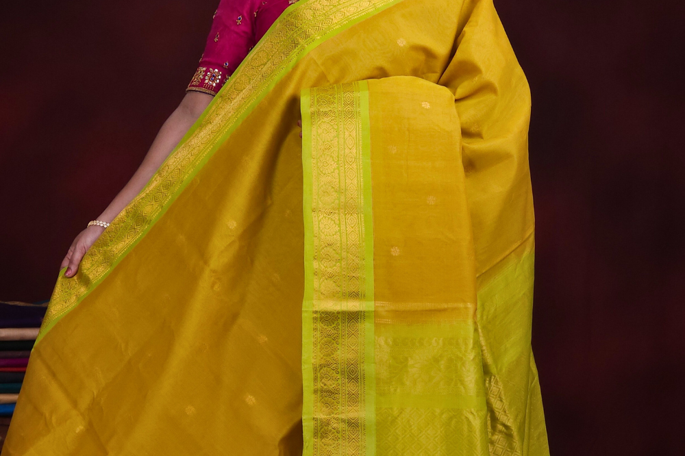 Mustard Yellow Gadwal Silk Cotton Saree