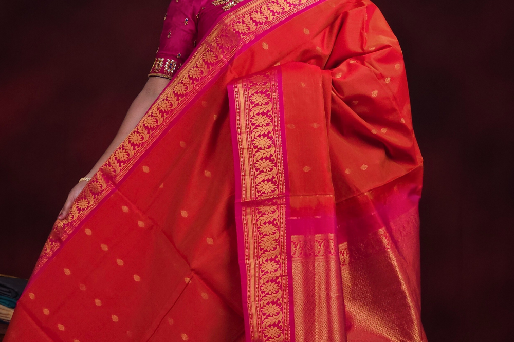 Rust Orange and Pink Gadwal Silk Cotton Saree