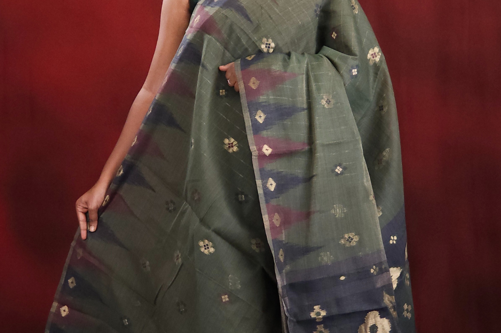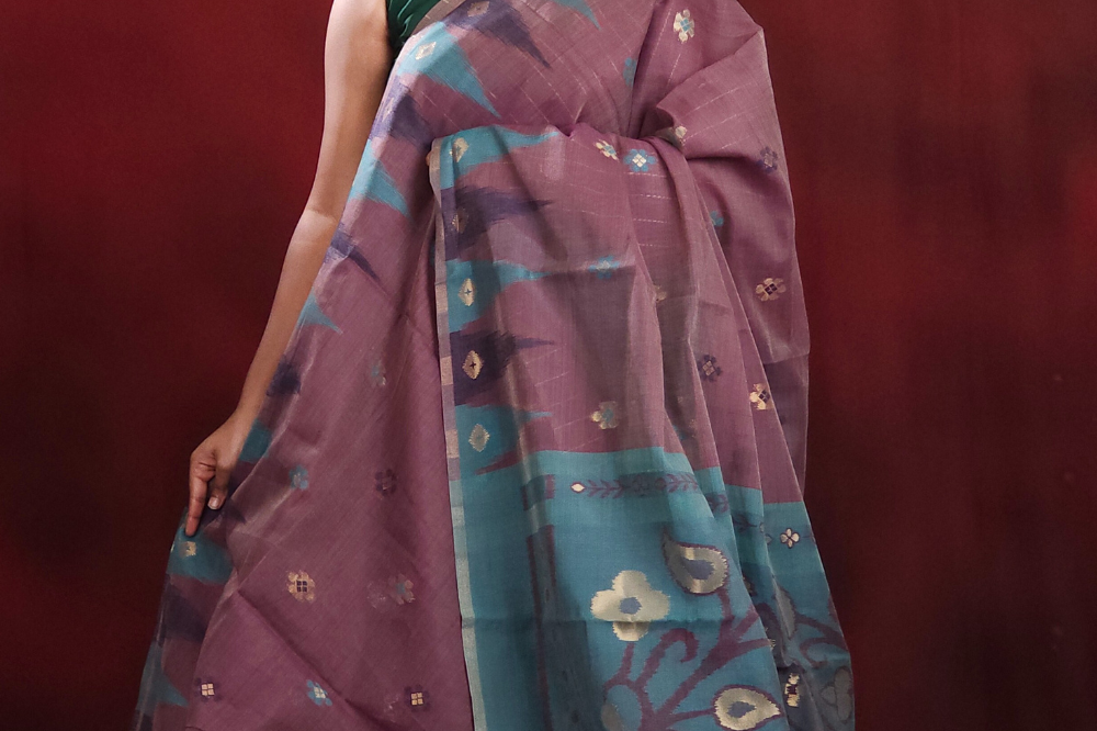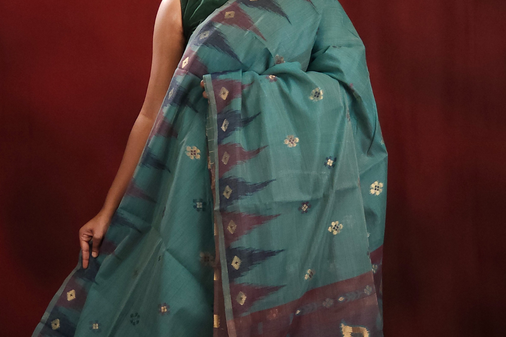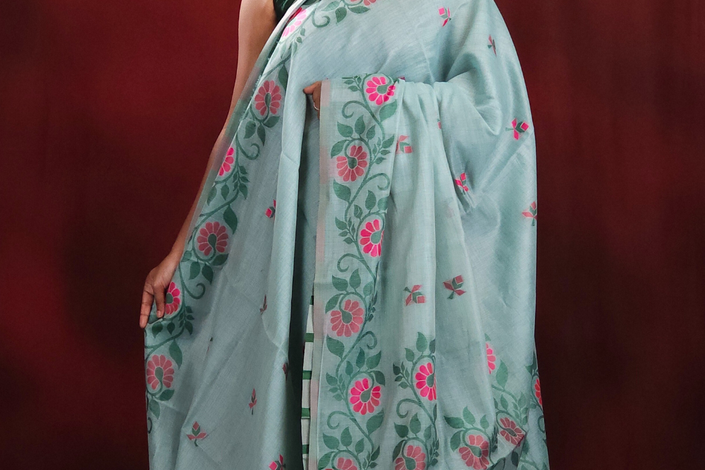 Pastel Mint Blue Chanderi Silk Cotton Saree