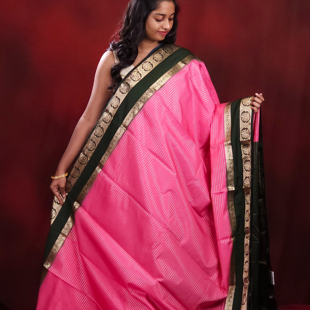 Baby Pink Semi Mysore Silk Saree