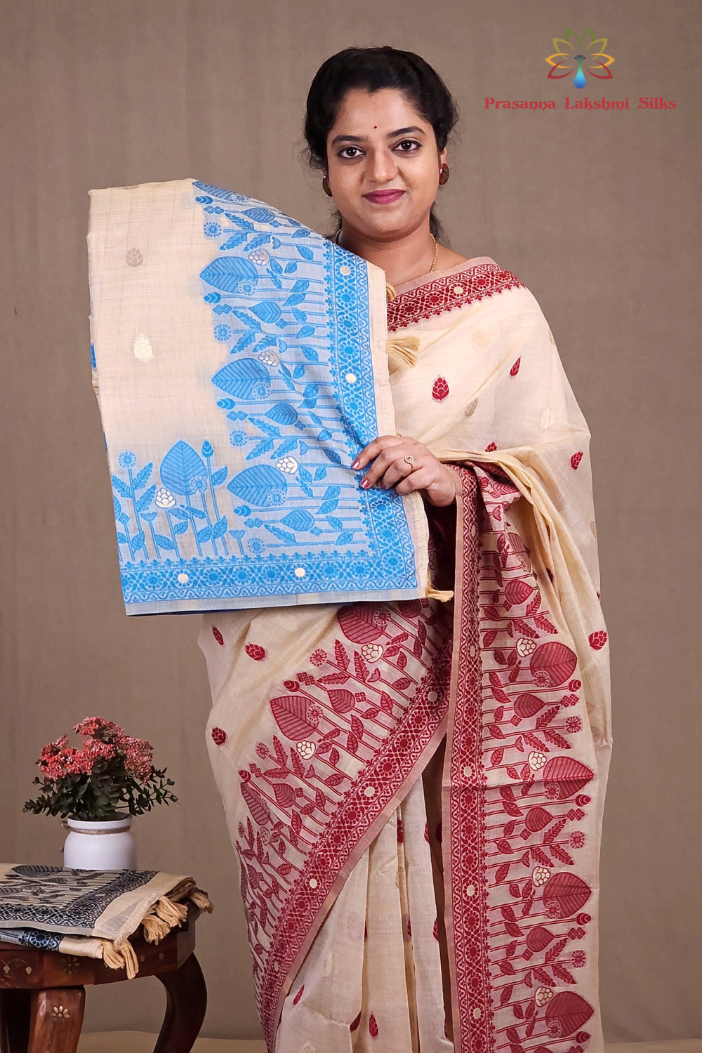 Beige Chanderi Silk Cotton Saree