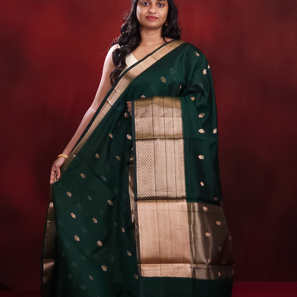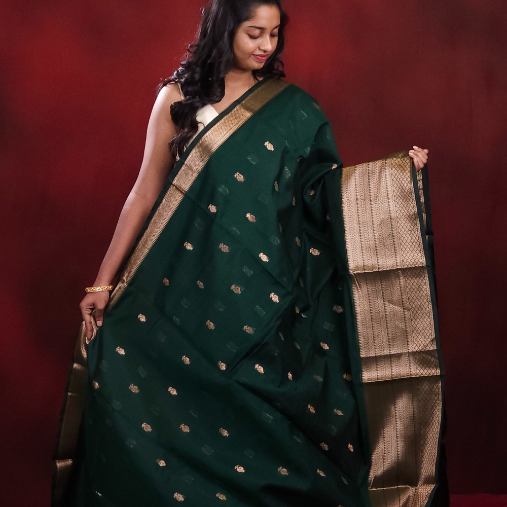 Bottle Green Banaras silk cotton Saree