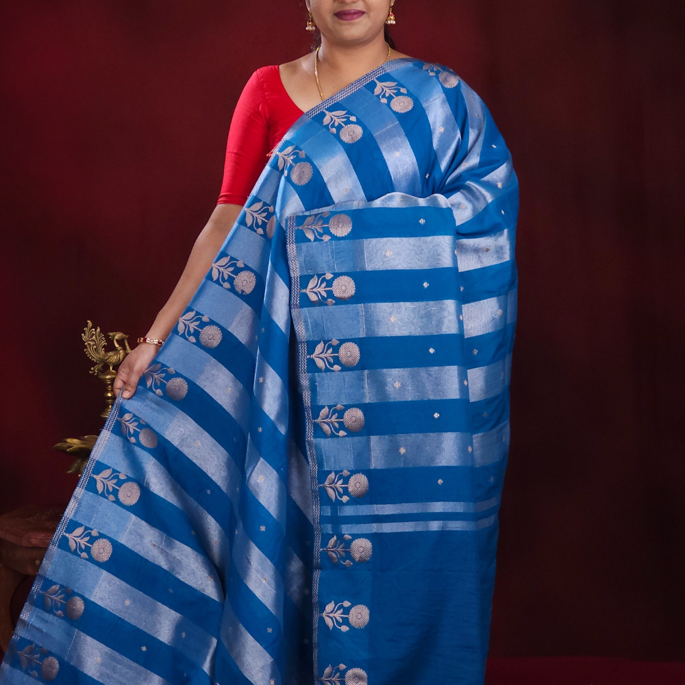 Cobalt Blue Chanderi saree