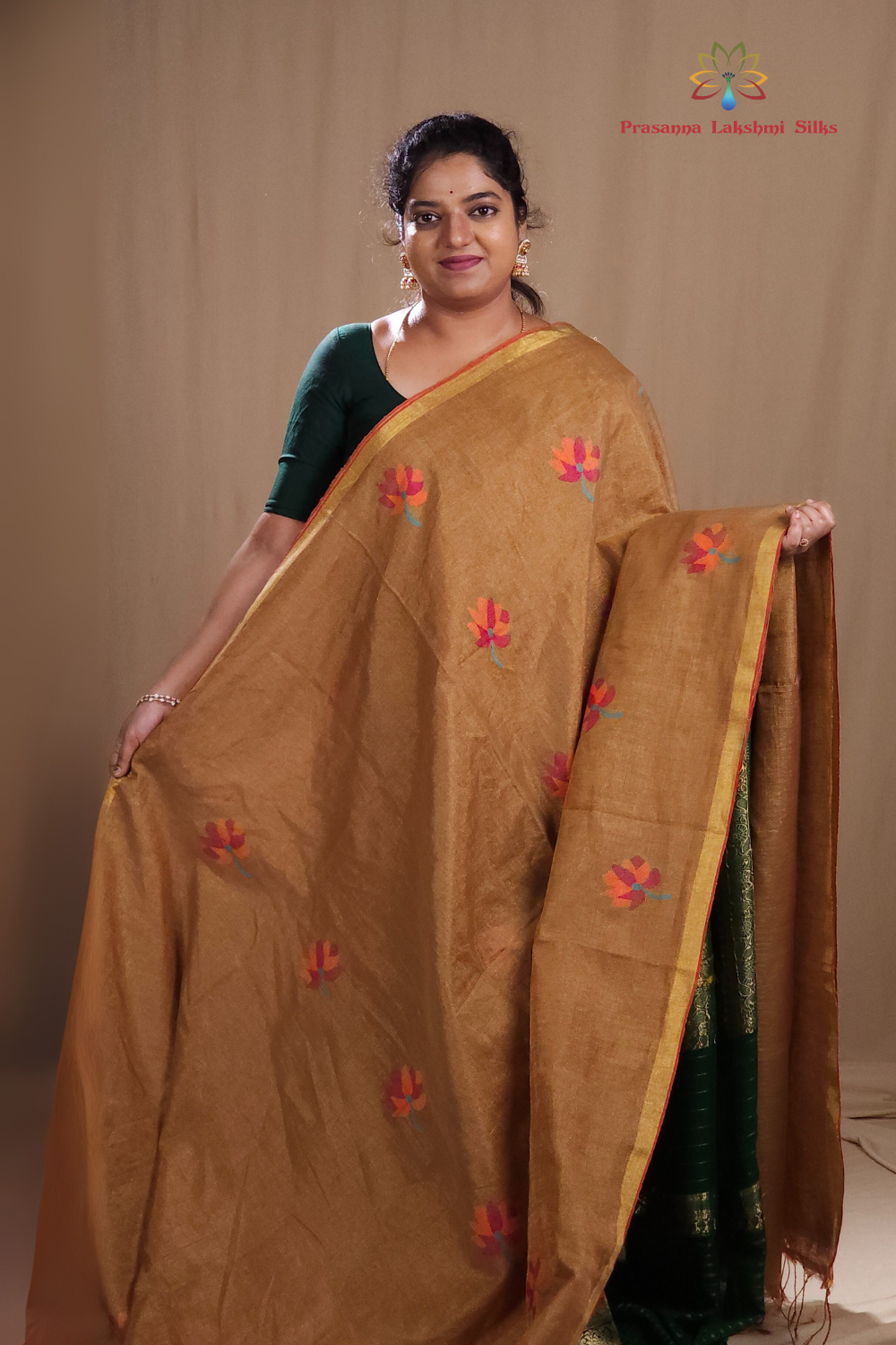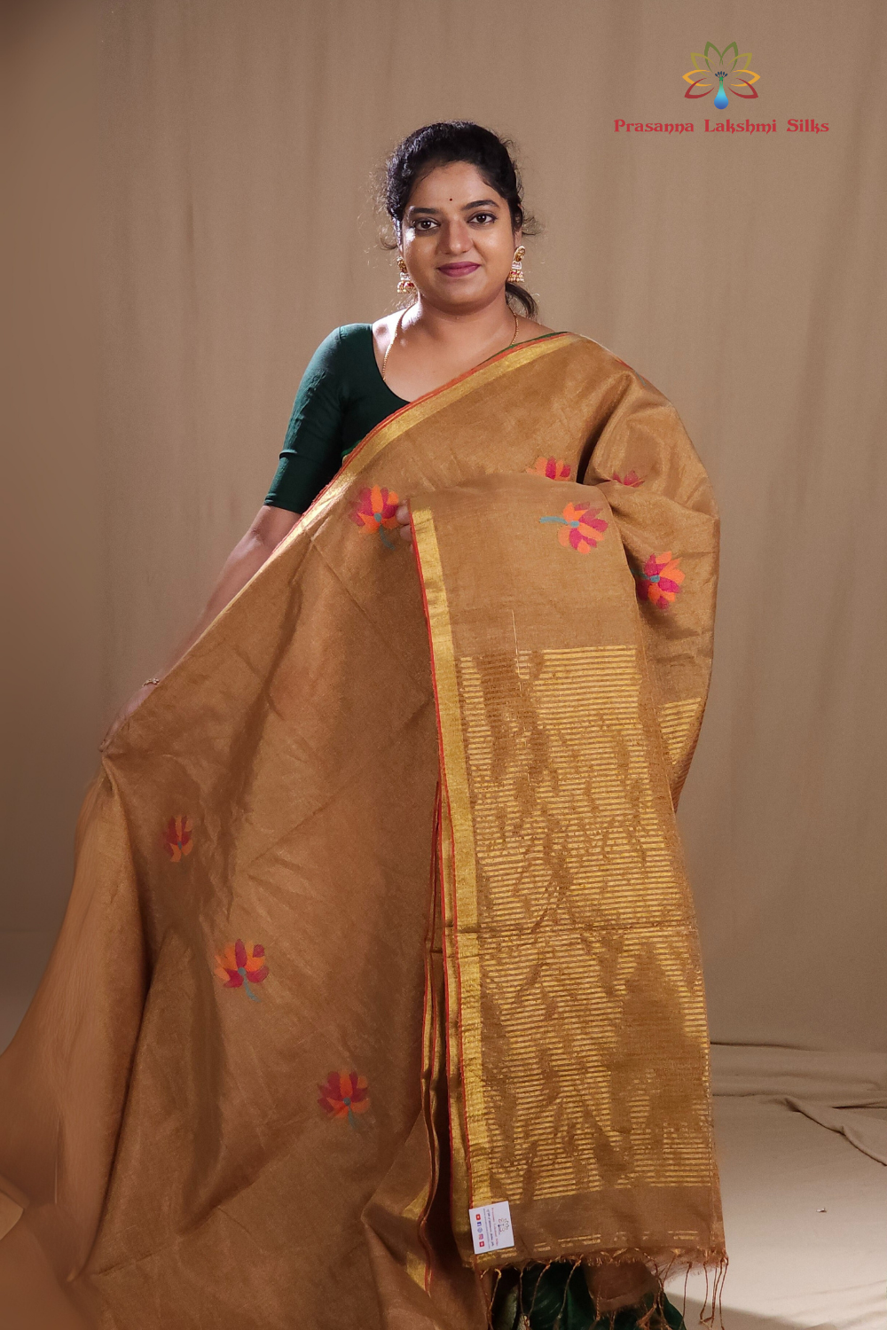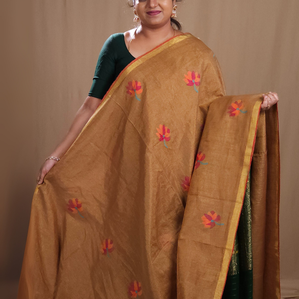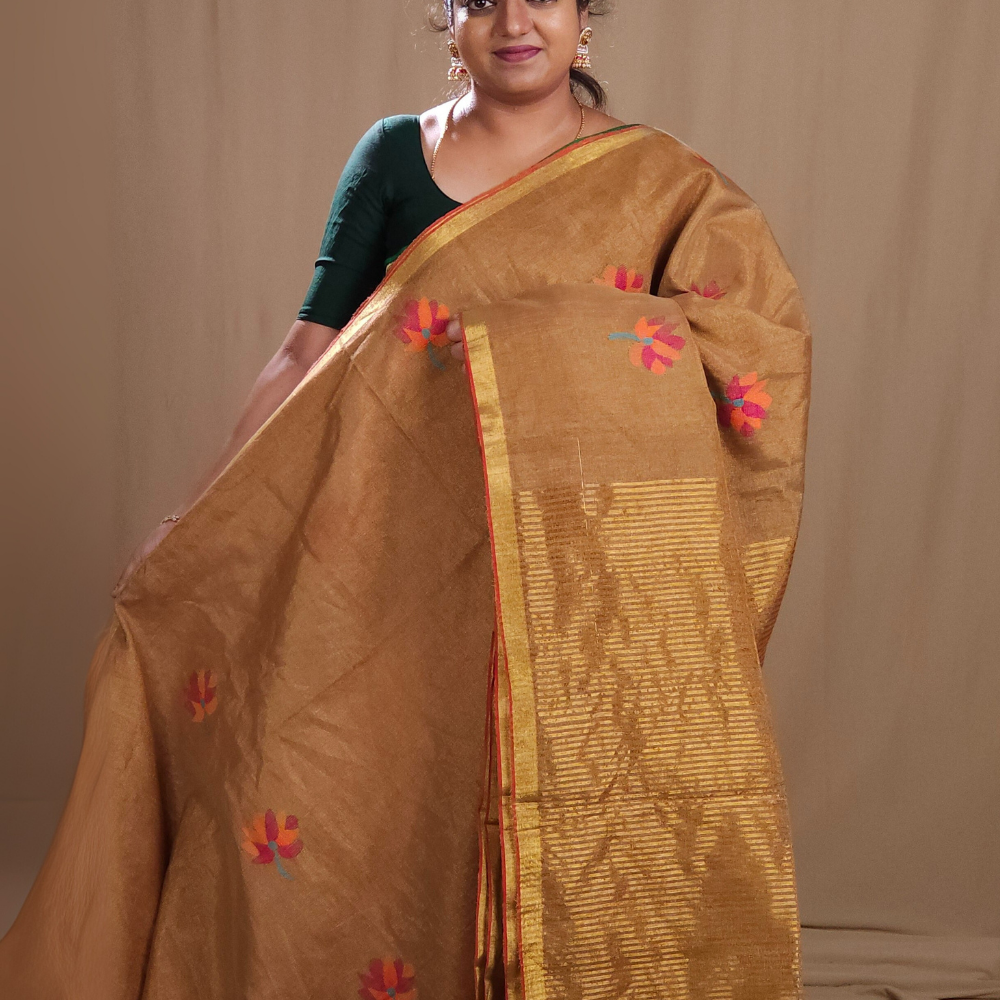 Dark Beige Linen Tissues Sarees