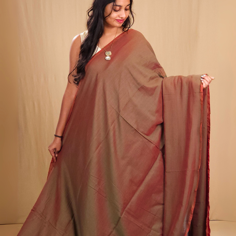 Dual Shade Of Green & Orange Khaddi Cotton Saree
