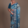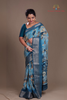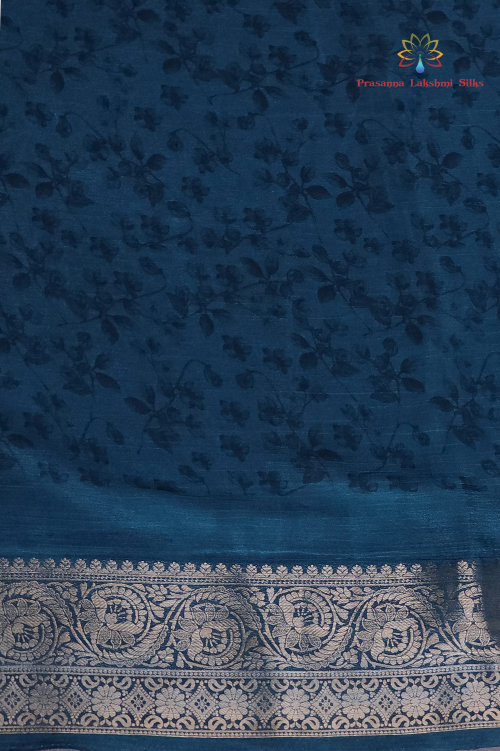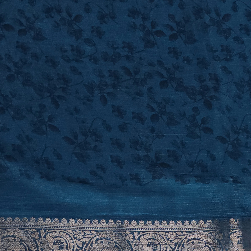 Light and Dark Rama Blue Wrinkle Shiffon Sarees
