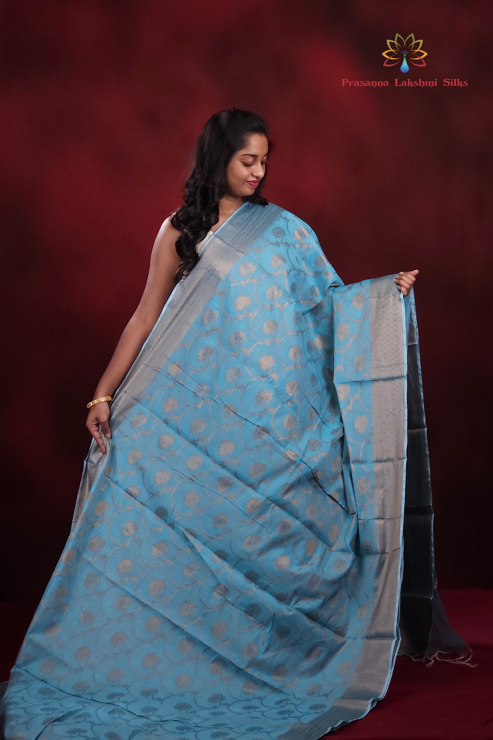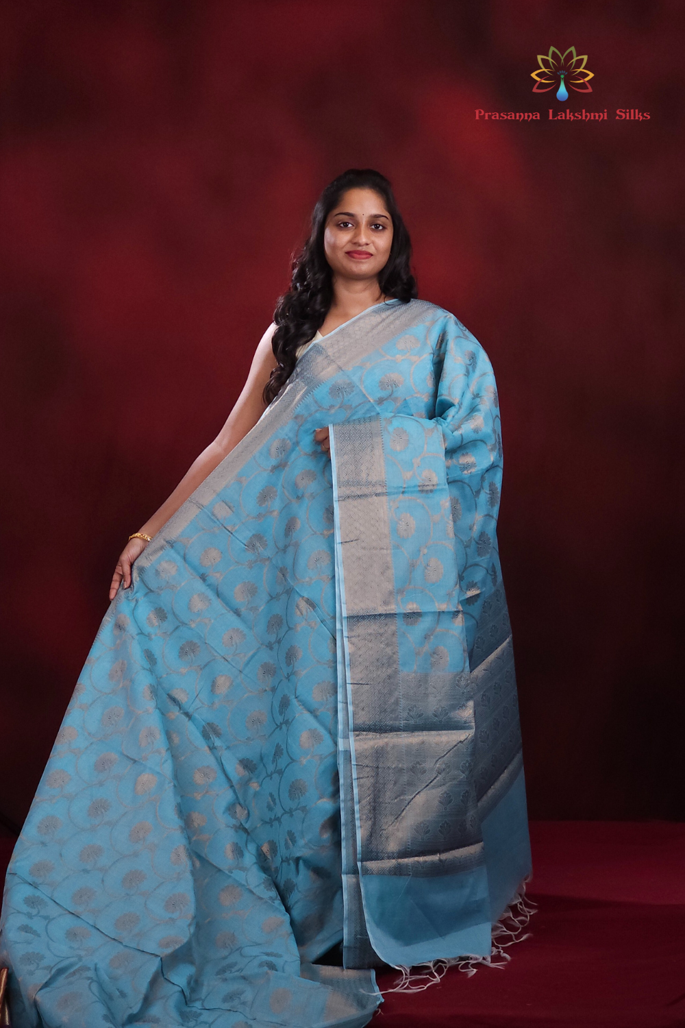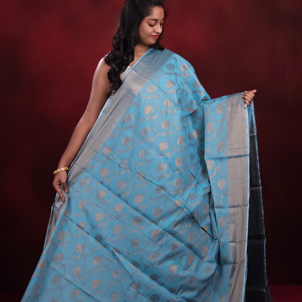 Elevate your style with our Banarasi silk cotton sarees allover zari woven floral design ,zari woven khaddi borders, rich zariwoven brocade pallu and comes with a running blouse .........