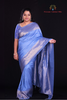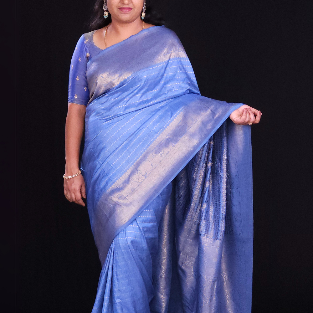 Soft silk Saree with allover beautiful Horizontal stripes with floral zari woven borders ,rich brocade pallu,paired with runnig blouse