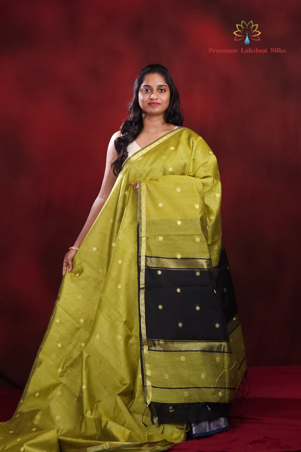 Elegant Semi Maheshwari Silk cotton sarees allover small floral zari woven motifs with 1 inch zari woven borders detailing , contrast pallu and blouse........
