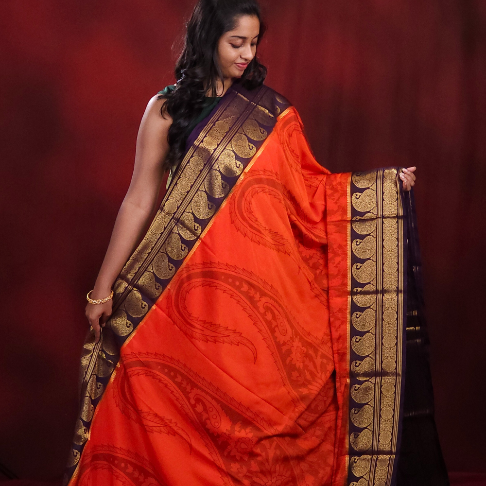 Orange Semi Mysore Silk Saree