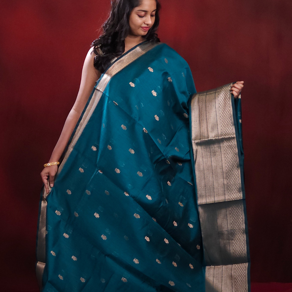 Elegant Banaras Silk cotton sarees allover small floral zari woven motifs with rich zari woven borders rich tissue pallu and running blouse........