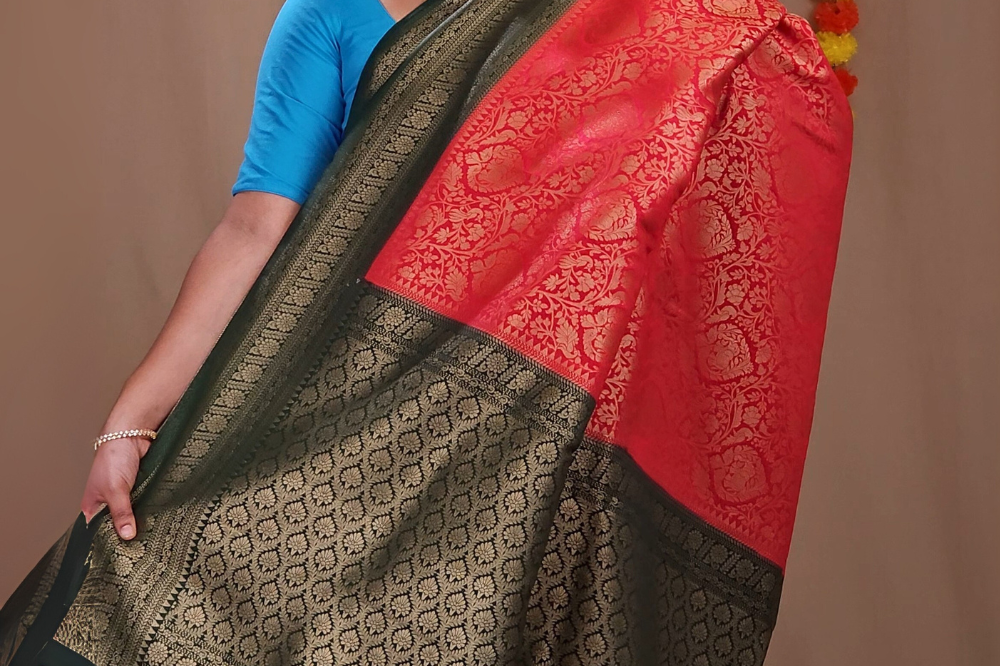 Bottle Green Semi Banaras Khaddi Georgette Sarees