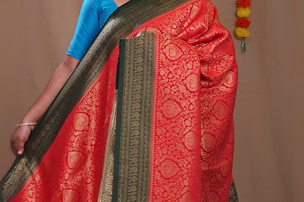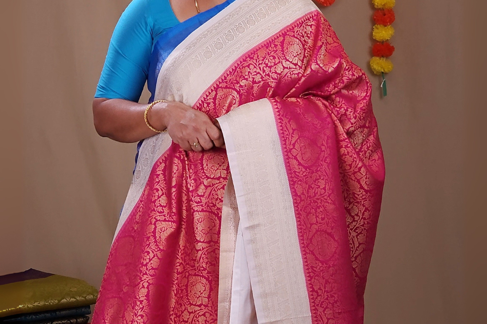 Experience the timeless beauty of 100% Pure Silk Handloom Gadwal Sarees, crafted by skilled artisans and certified by Silk Mark for purity. These sarees feature intricate handwoven zari patterns, rich textures, and a lightweight feel that makes them ideal for weddings, festive occasions, and cultural celebrations.