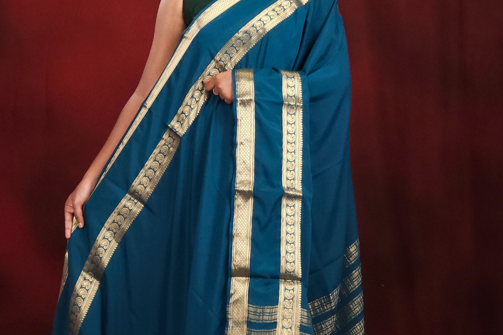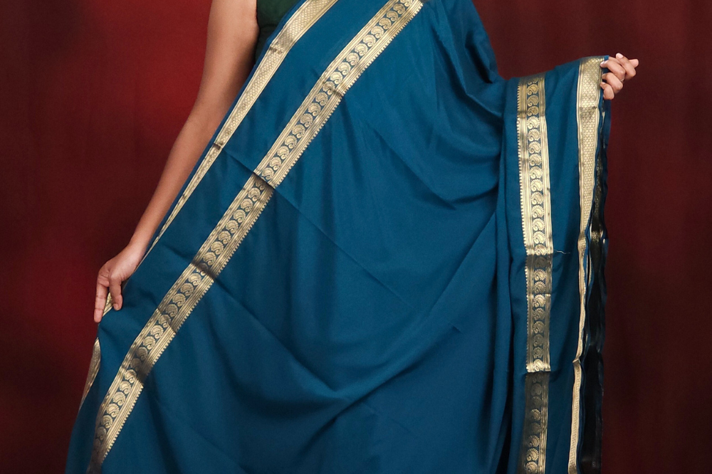 Pastel Mint Blue Chanderi Silk Cotton Saree