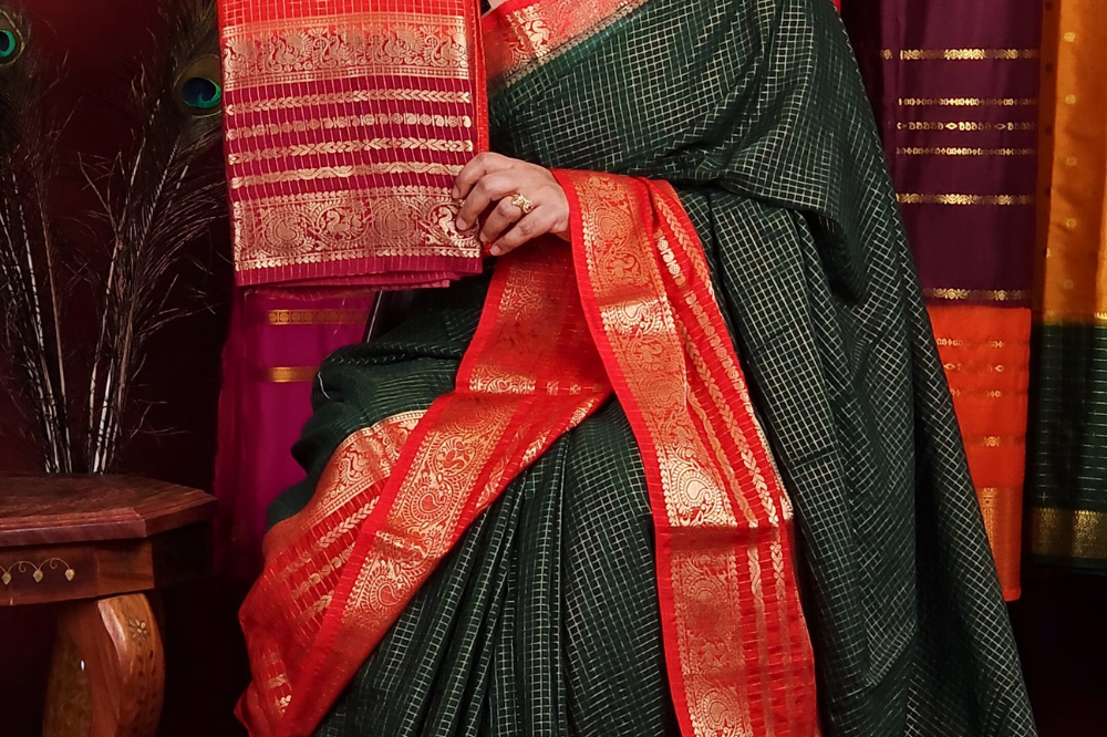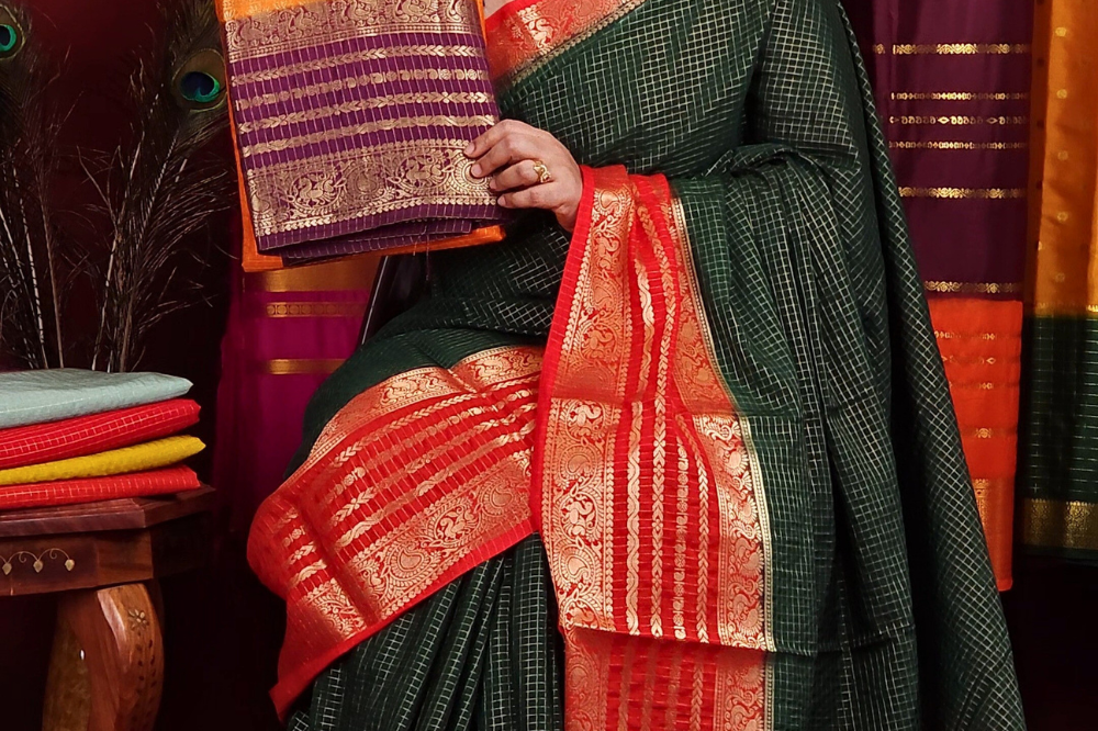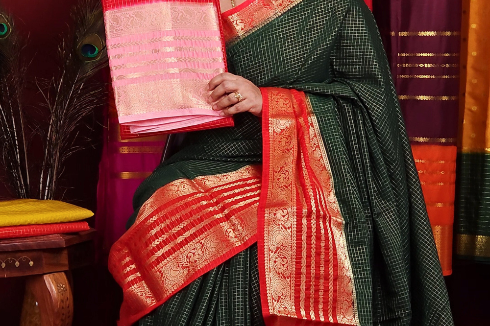 Experience the timeless beauty of 100% Pure Silk Handloom Gadwal Sarees, crafted by skilled artisans and certified by Silk Mark for purity. These sarees feature intricate handwoven zari patterns, rich textures, and a lightweight feel that makes them ideal for weddings, festive occasions, and cultural celebrations.