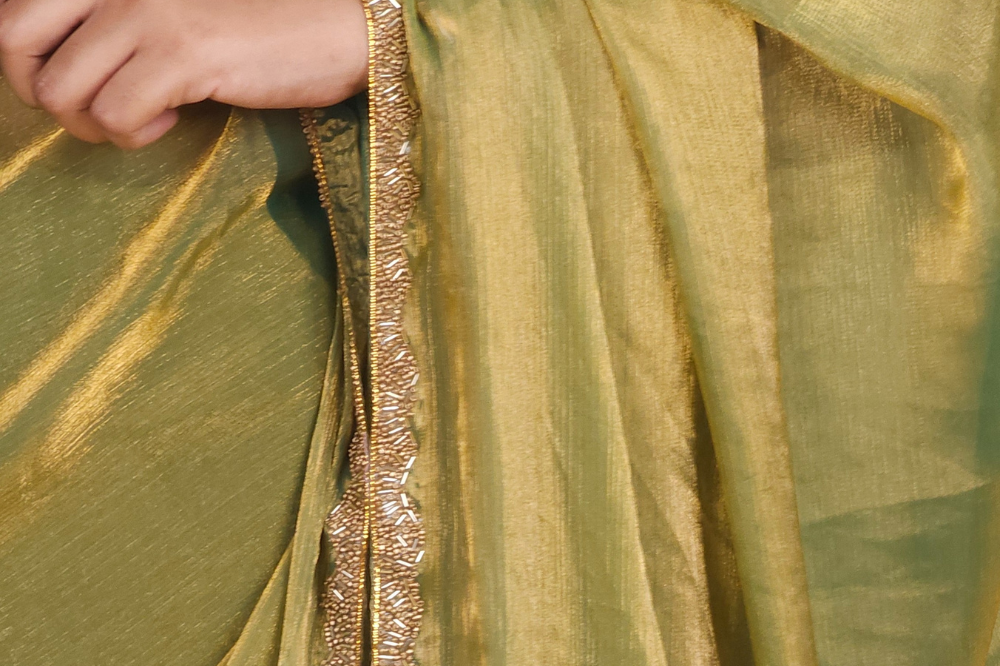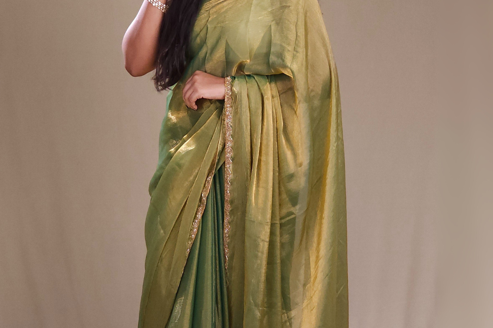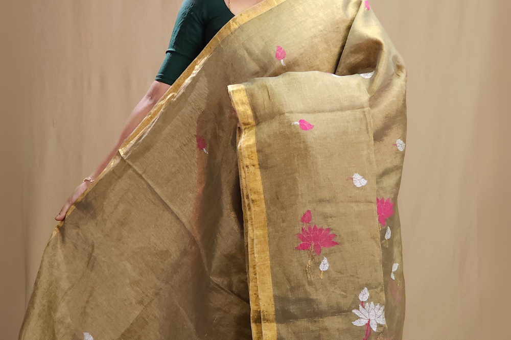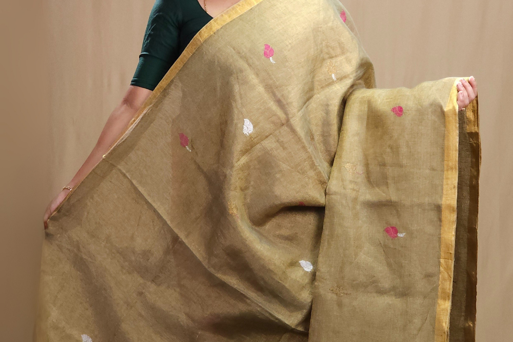 Greenish Grey Linen Tissues Sarees
