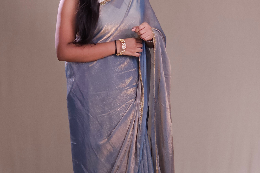 Dusty Blue Fendy Chiffon Saree
