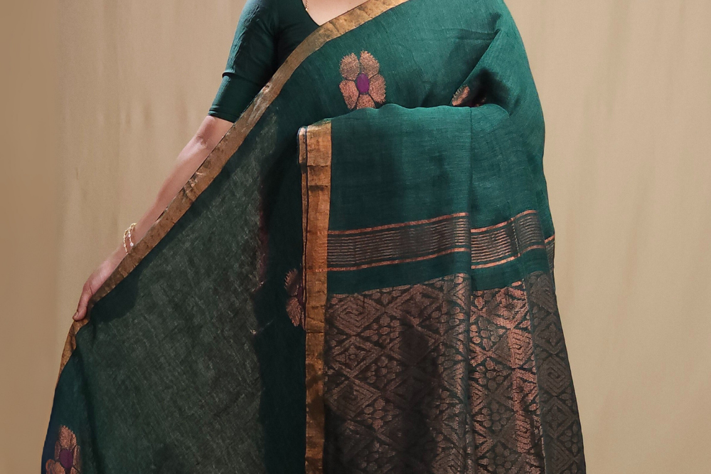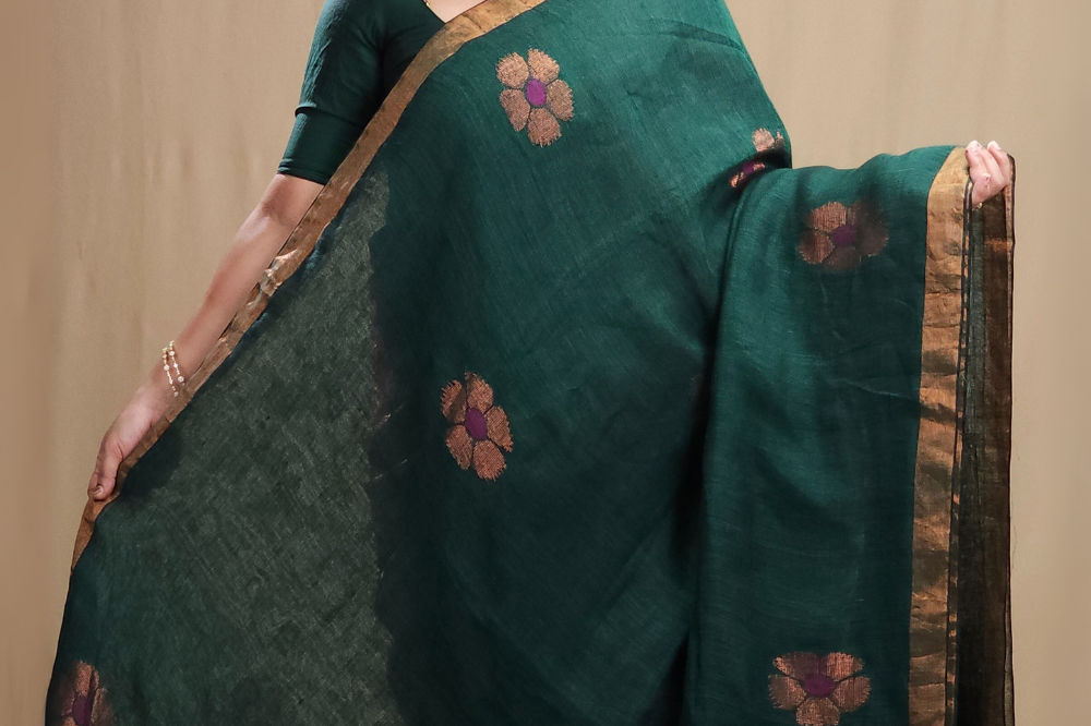 Bottle Green Linen Sarees