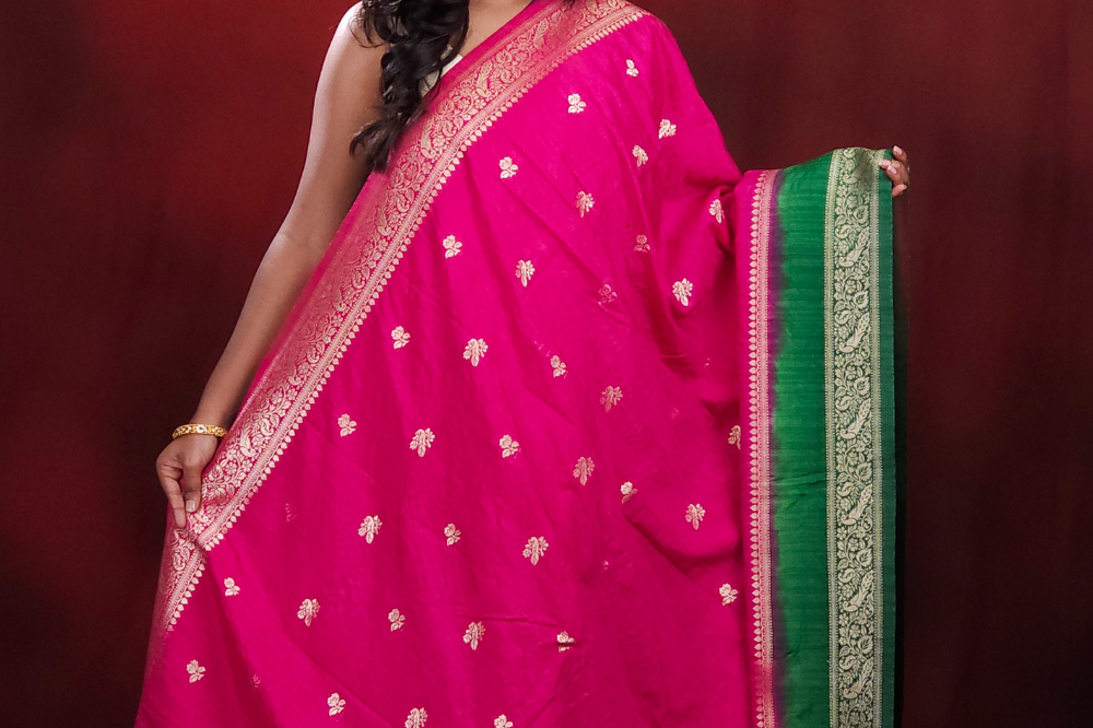 Experience the timeless beauty of 100% Pure Silk Handloom Gadwal Sarees, crafted by skilled artisans and certified by Silk Mark for purity. These sarees feature intricate handwoven zari patterns, rich textures, and a lightweight feel that makes them ideal for weddings, festive occasions, and cultural celebrations.