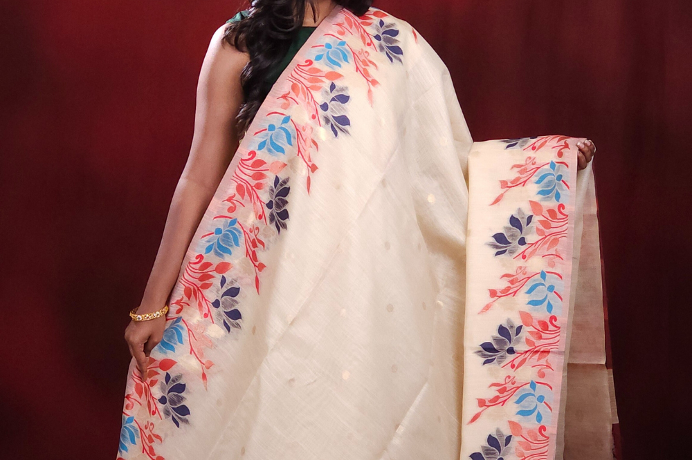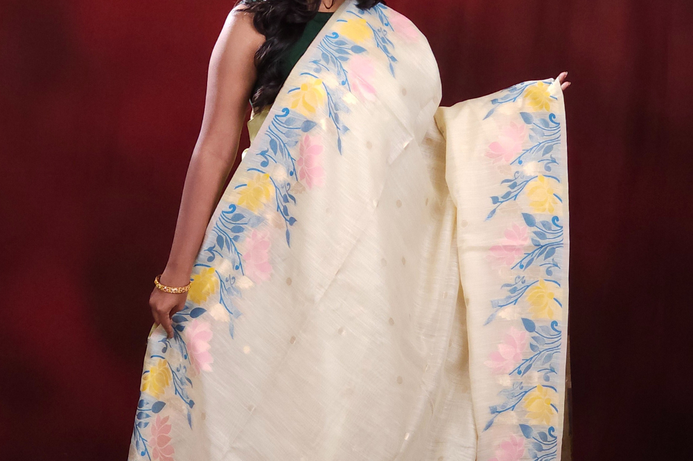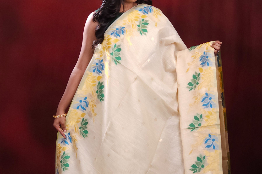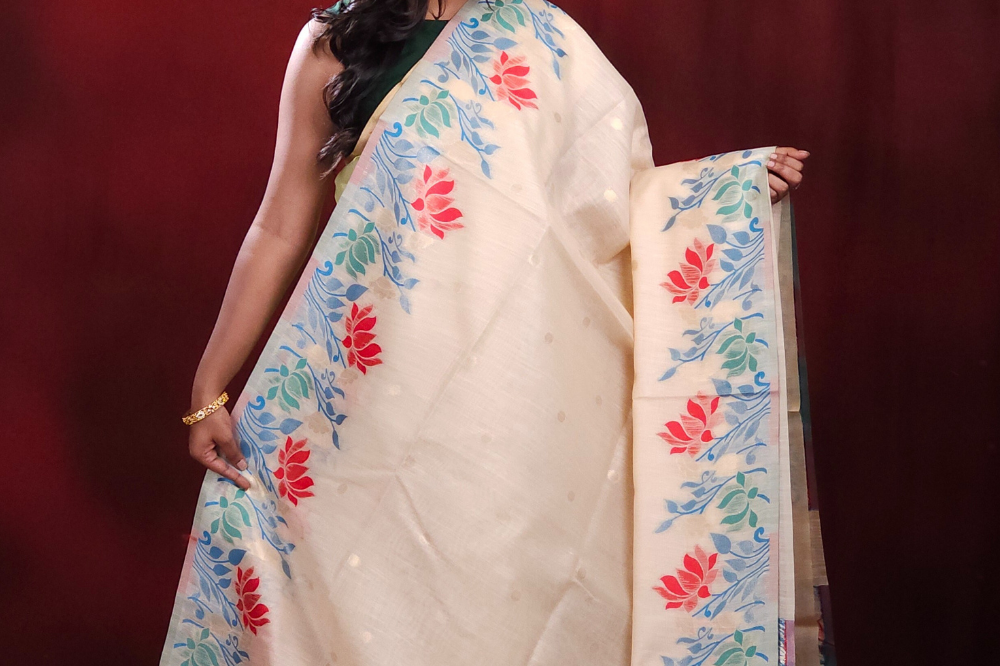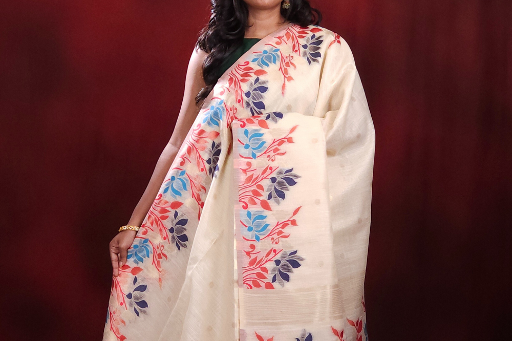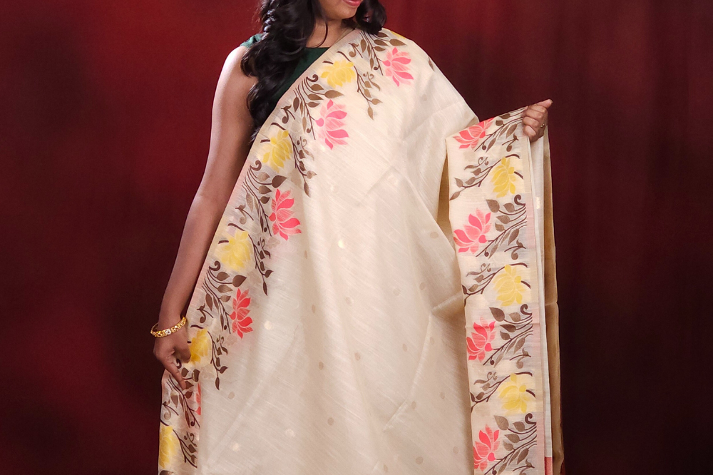 Cream Chanderi Silk Cotton Saree