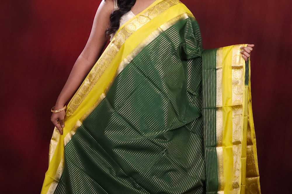 Bottle Green Semi Mysore Silk Saree