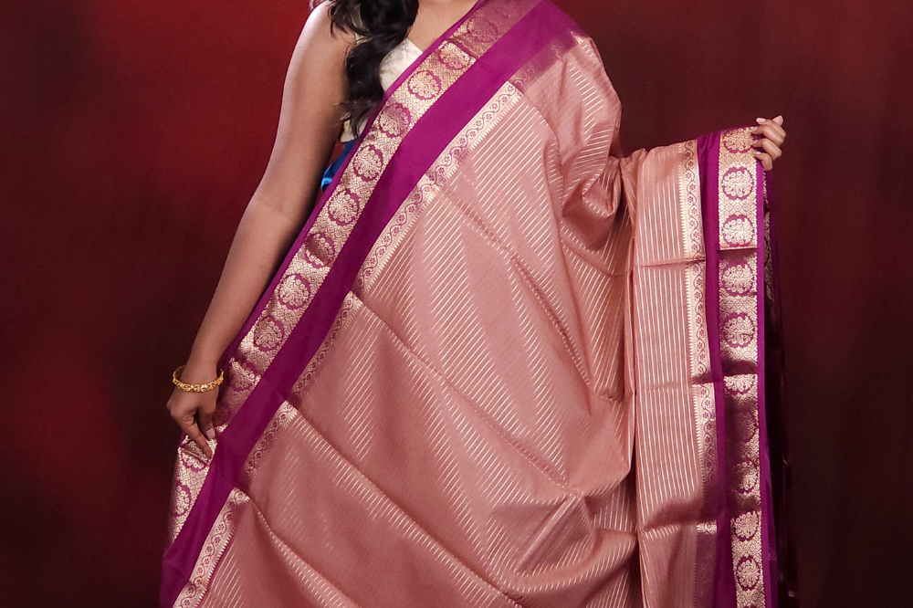 Baby Pink Semi Mysore Silk Saree