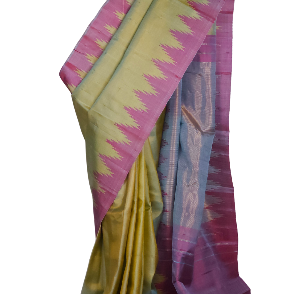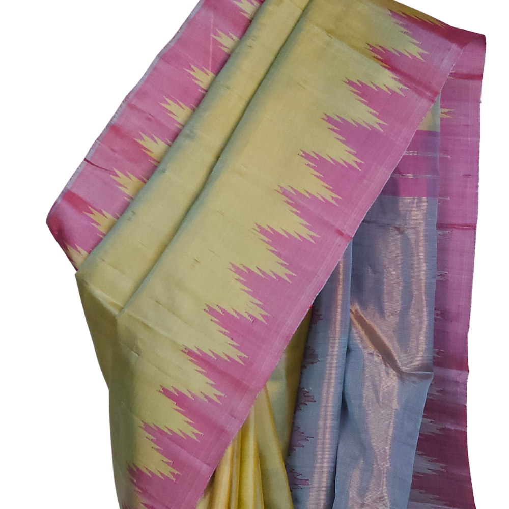 Dual Shade Of Sky Blue & Yellow Gadwal Silk Saree