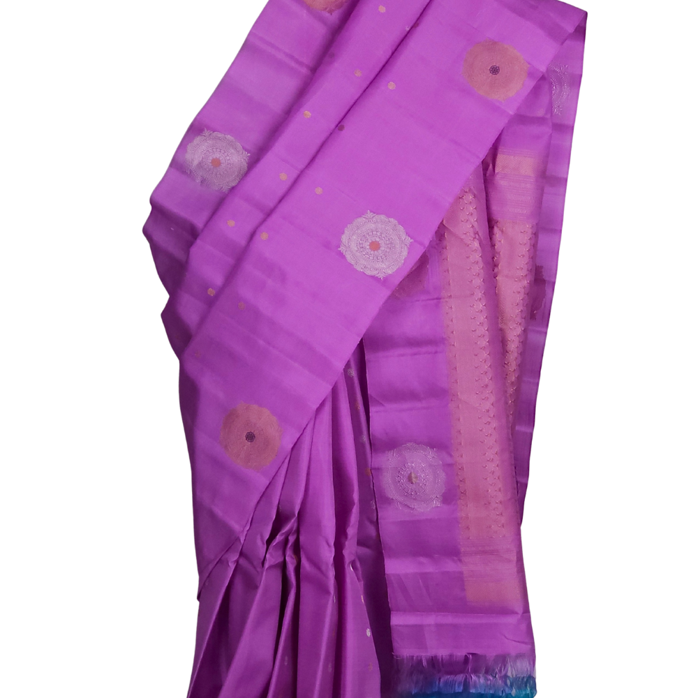 Experience the rich heritage of tradition with this exquisite Pure Handloom Gadwal Silk Saree.All-over zari motifs with intricate turning border rich zari brocade pallu. This masterpiece weaves together elegance and sophistication, perfect for special occasions.