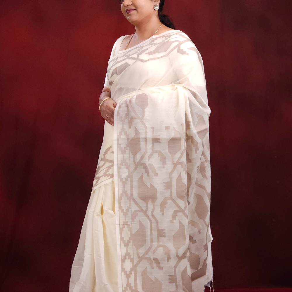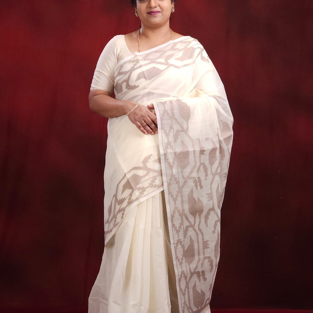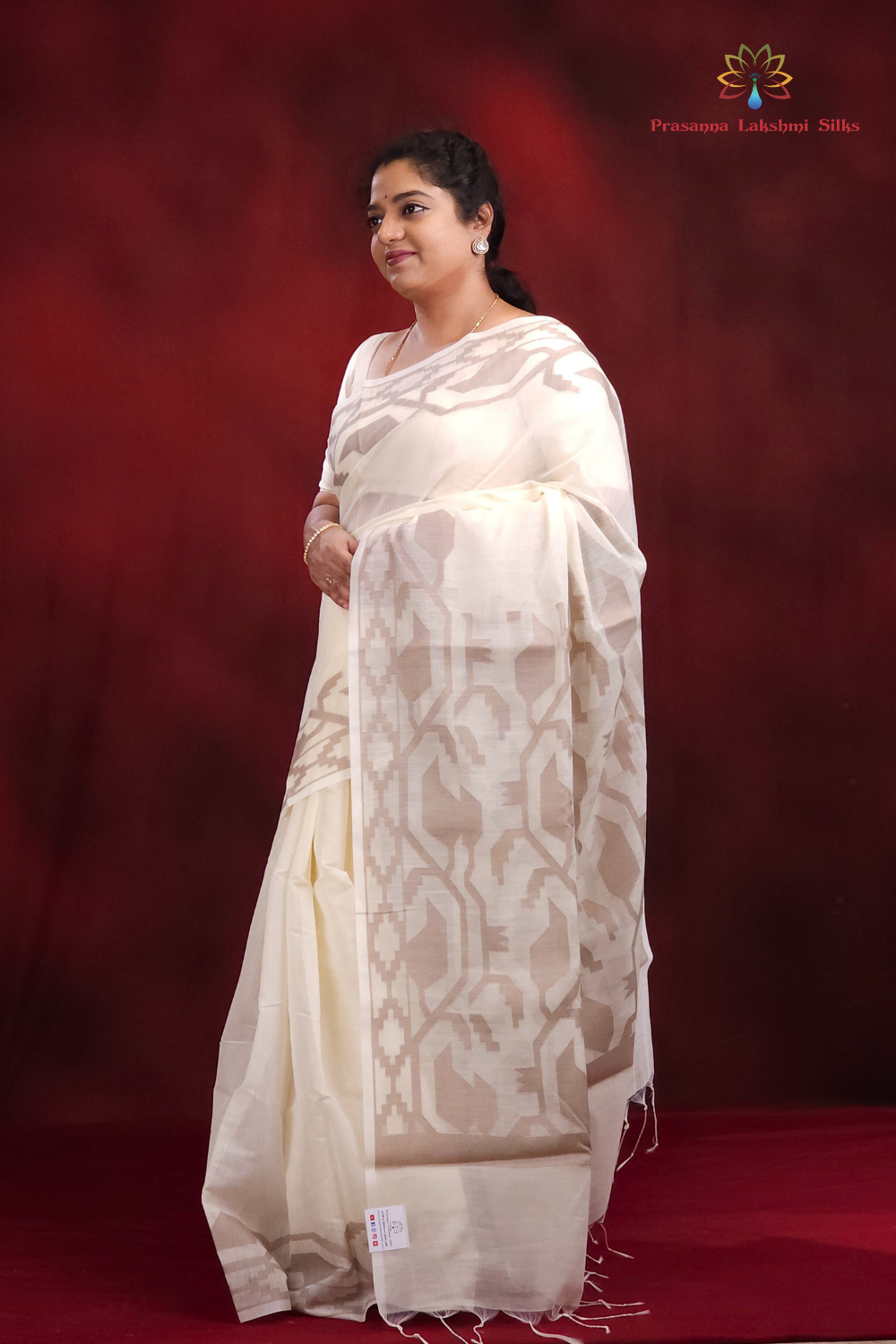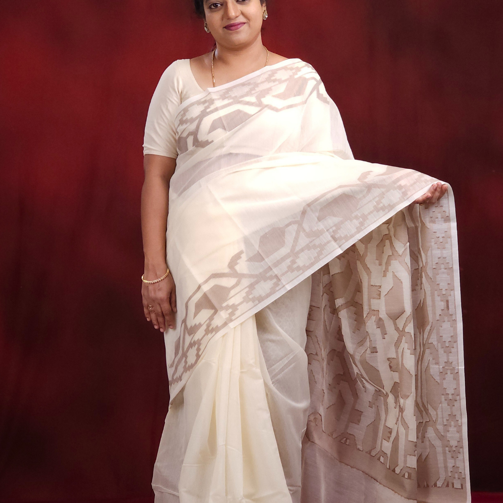 Experience the comfort of Semi muslin jhamdhani sarees with intricate jhamdhani borders ,pallu with tassels paired with contrast brocade blouse.....