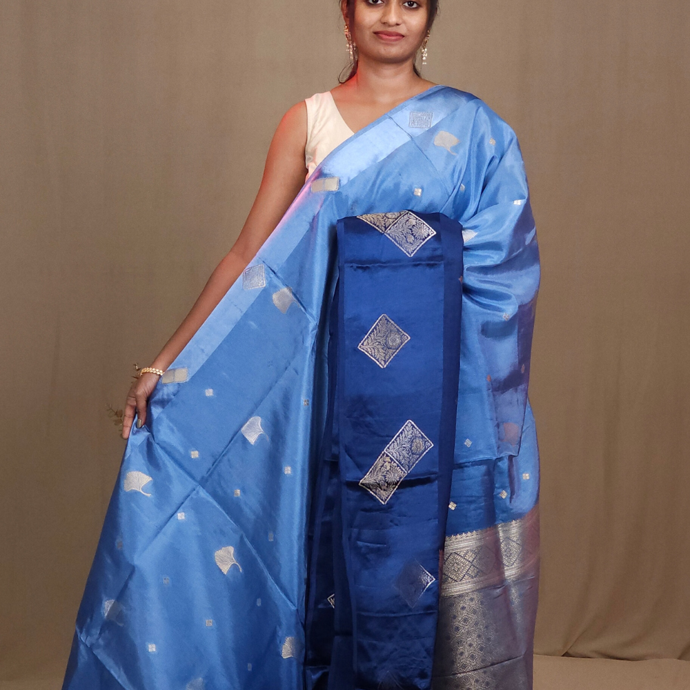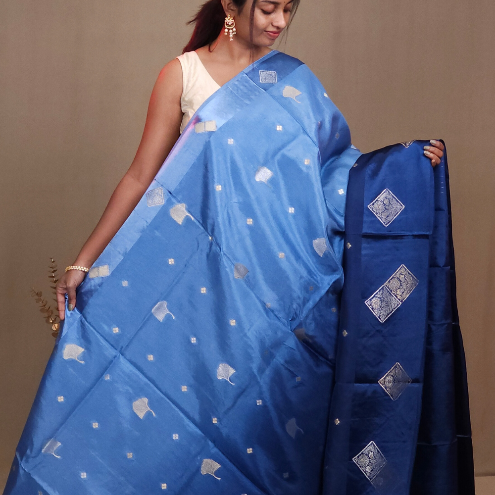 Light Blue & Blue Banarasi Satin Saree