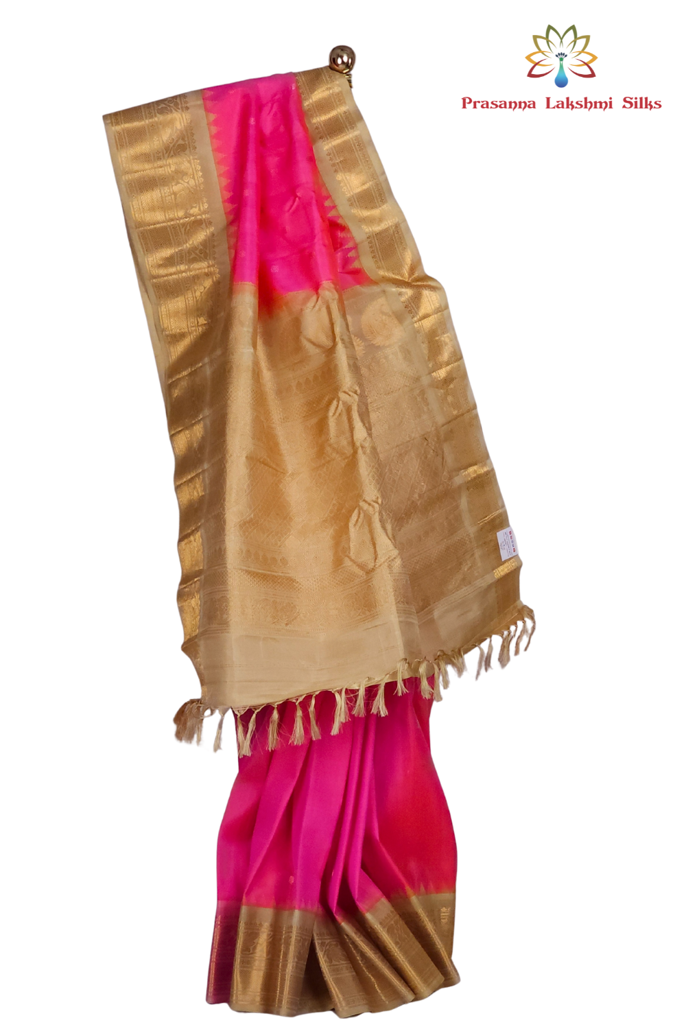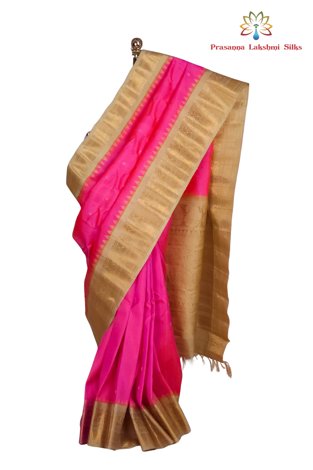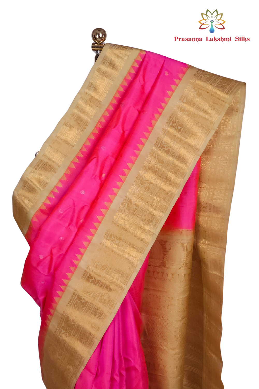 Elevate your elegance with our exquisite Handloom Gadwal Pure Silk Saree, adorned with Intricate zari motifs zari-woven borders Rich zari-woven brocade adorns the pallu, making every drape a statement.