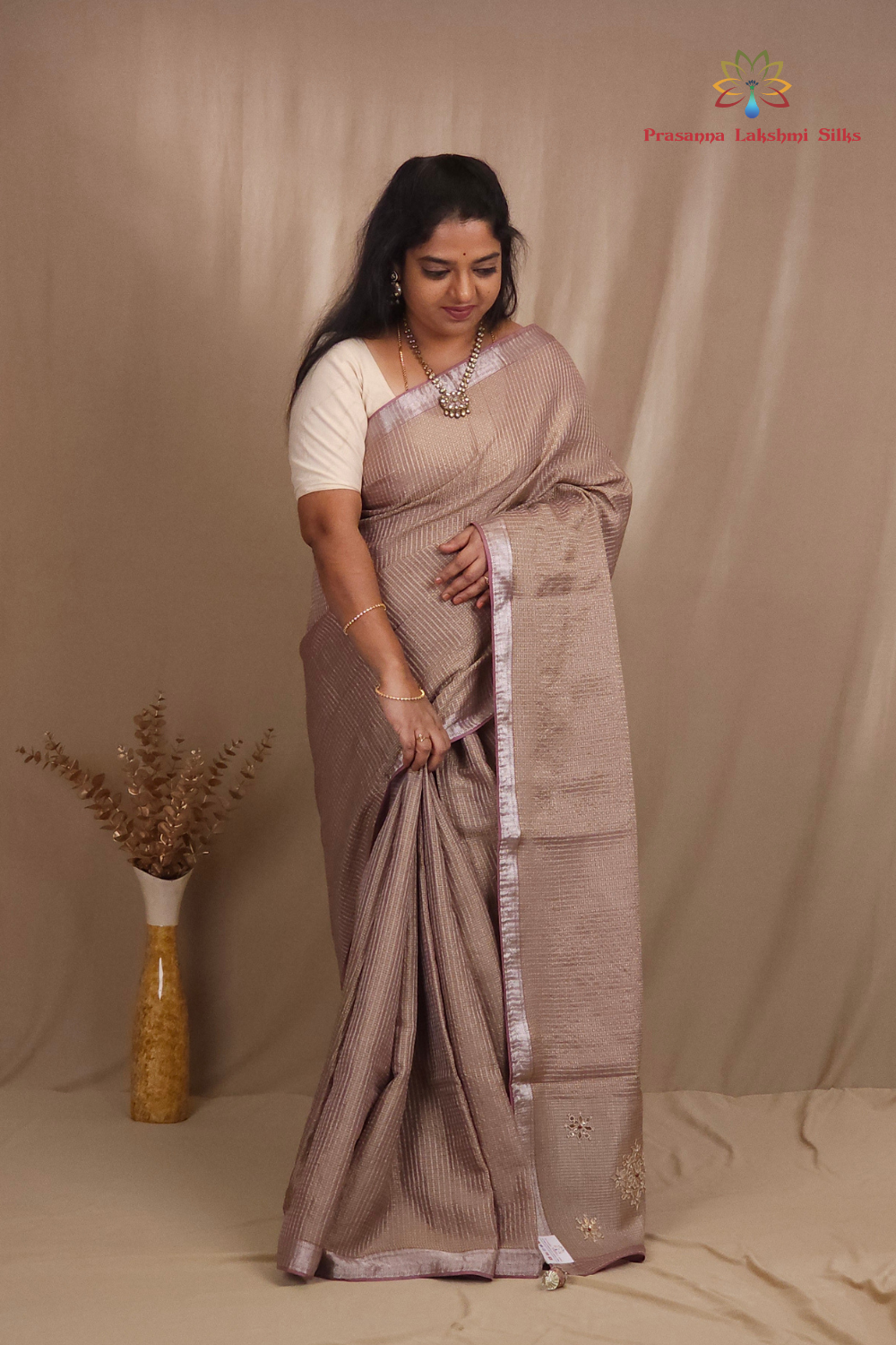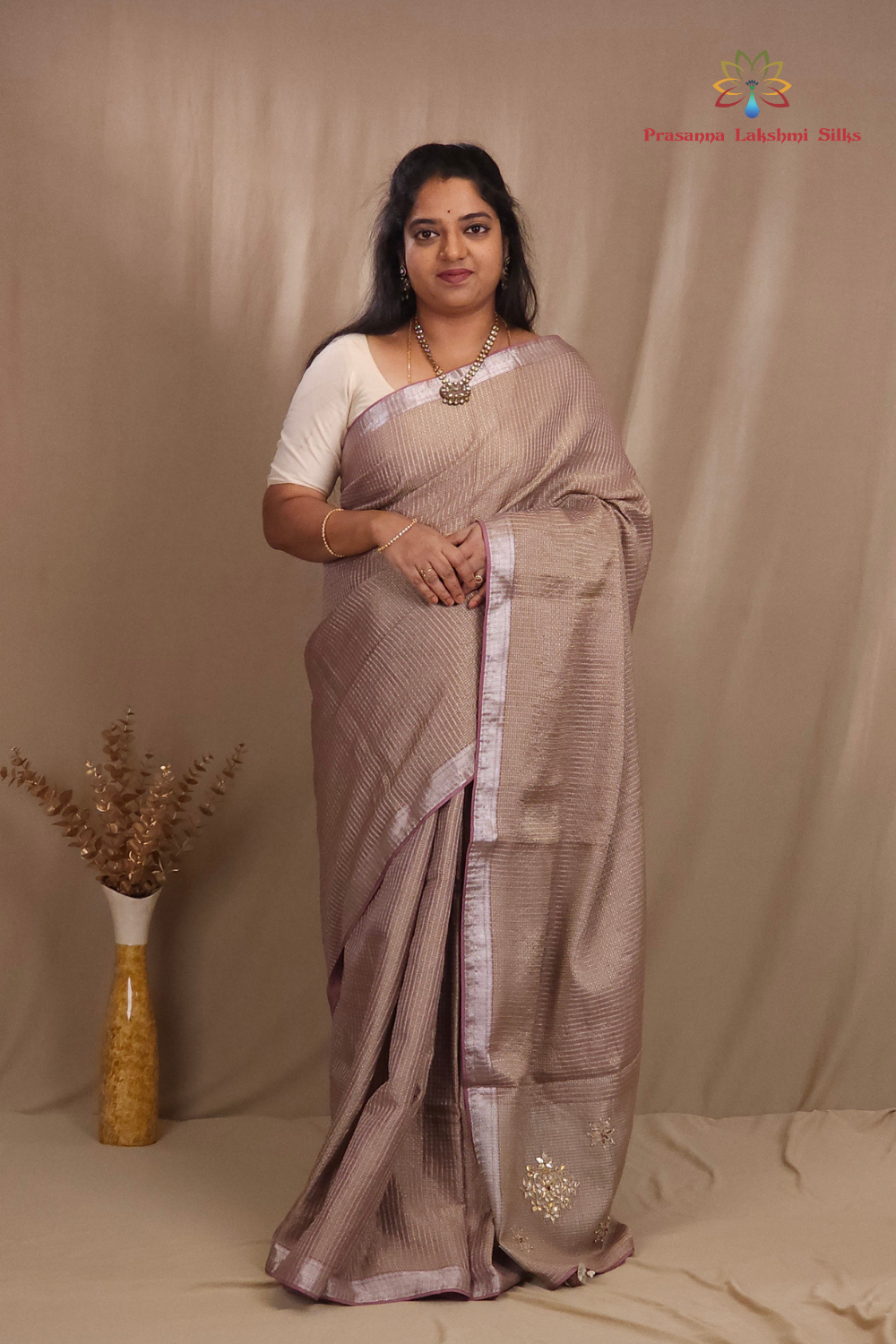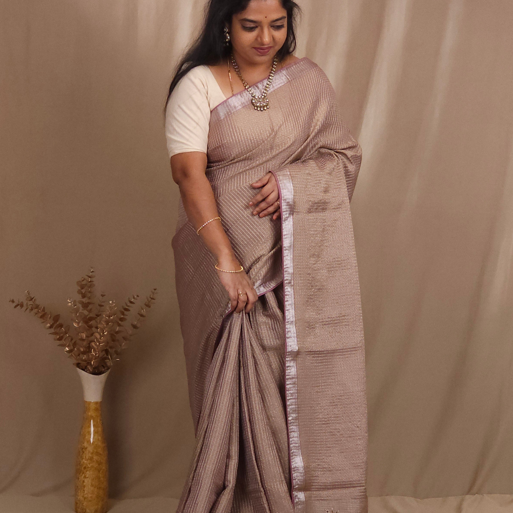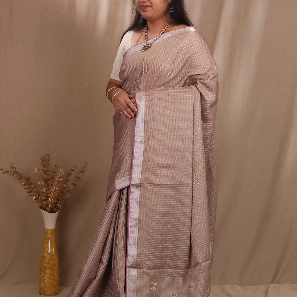 Experience the richness of Handloom Pure Kota Sarees allover tiny zari checks with zariwoven khaddi borders, beautiful gotapatti floral pallu, .Paired with a rich brocade blouse.........