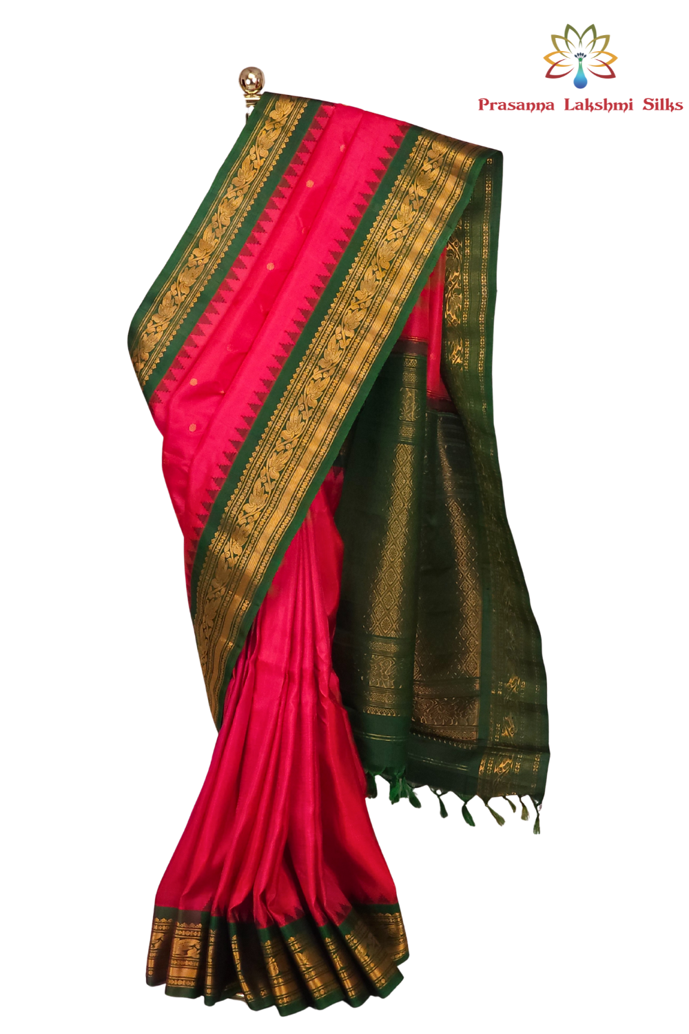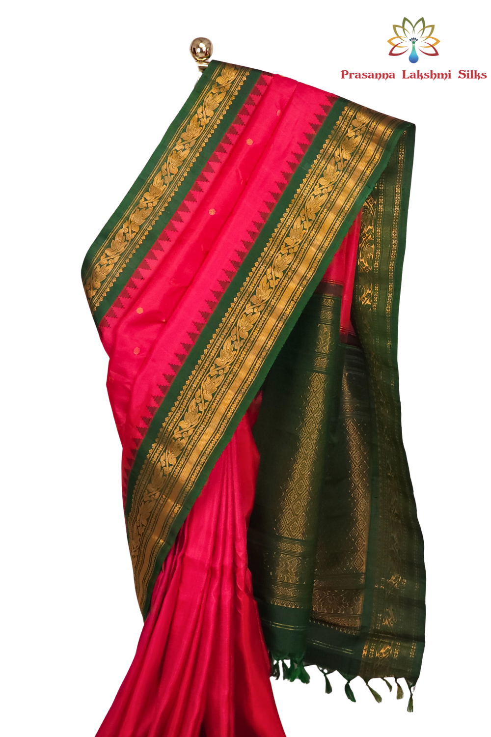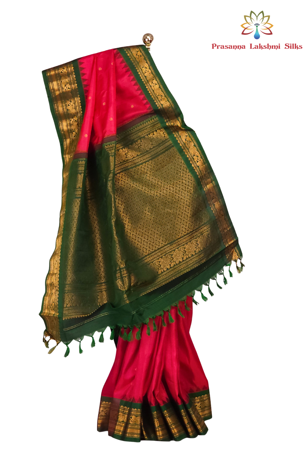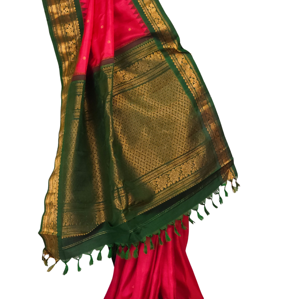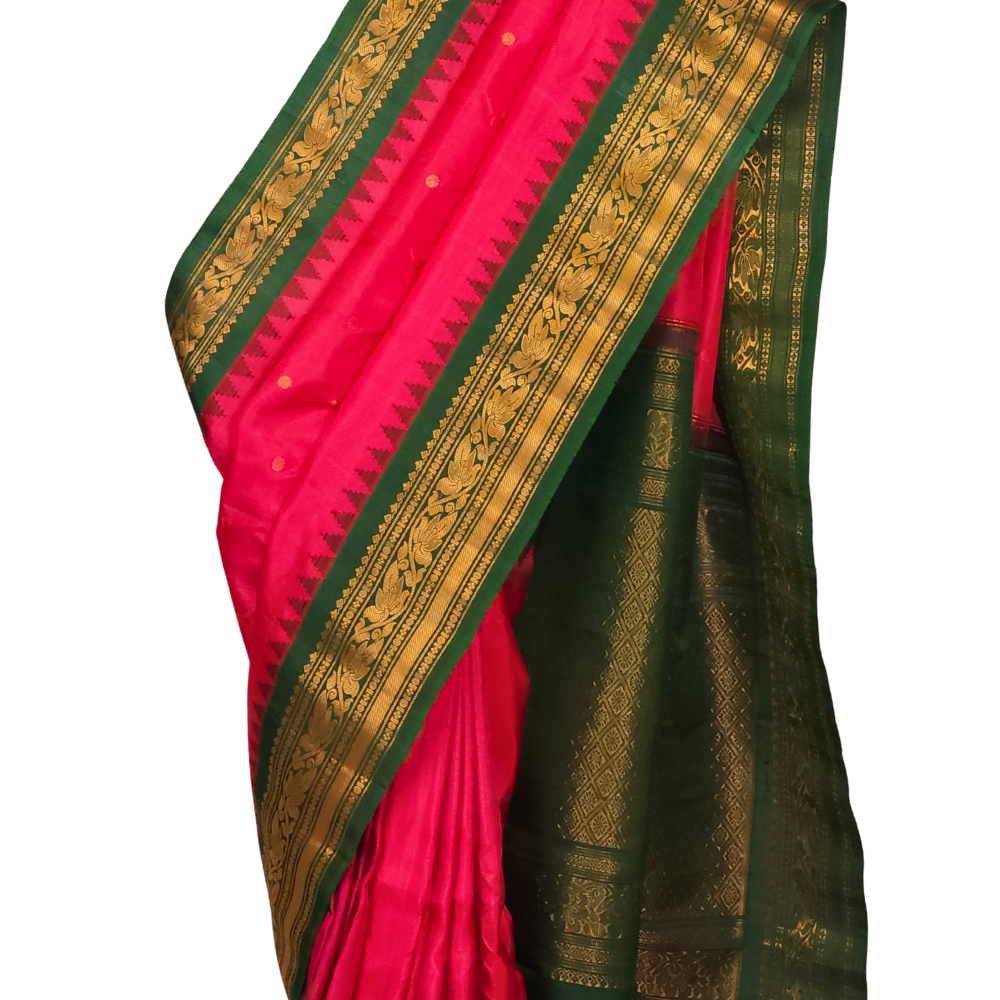 Elevate your elegance with our exquisite Handloom Gadwal Pure Tissue Silk Saree, adorned with Intricate zari motifs zari-woven borders Rich zari-woven brocade adorns the pallu, making every drape a statement.