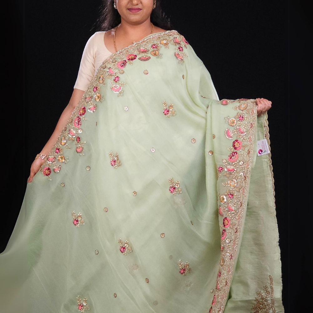 Pallu: Stone and Embroidery pallu