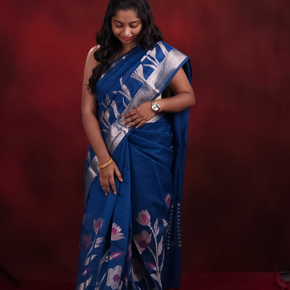 Prussian Blue Chanderi Saree