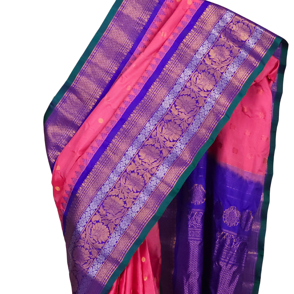 Rose Pink Gadwal Silk Saree